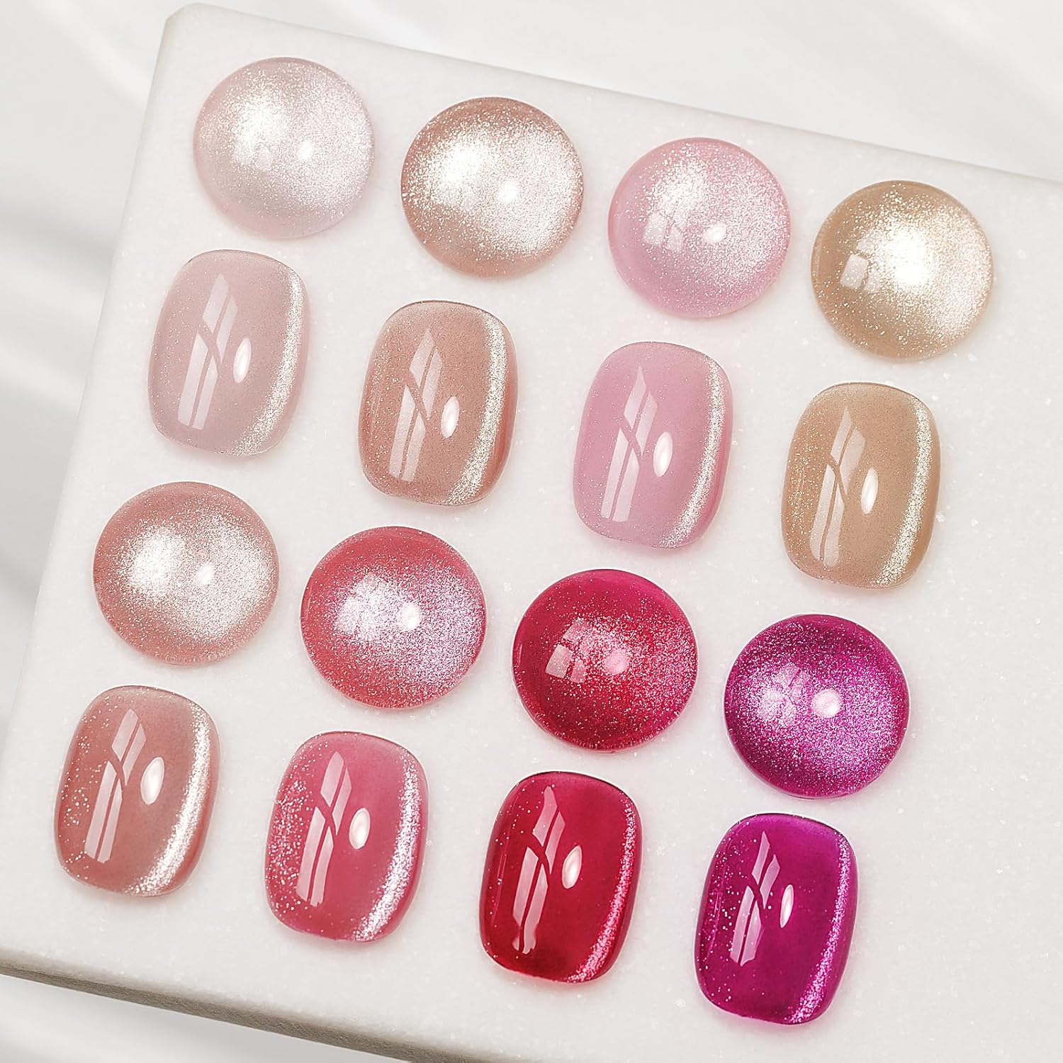 • Included Components : 1 double-headed magnet stick, 8 colors pink series magnetic gel polish