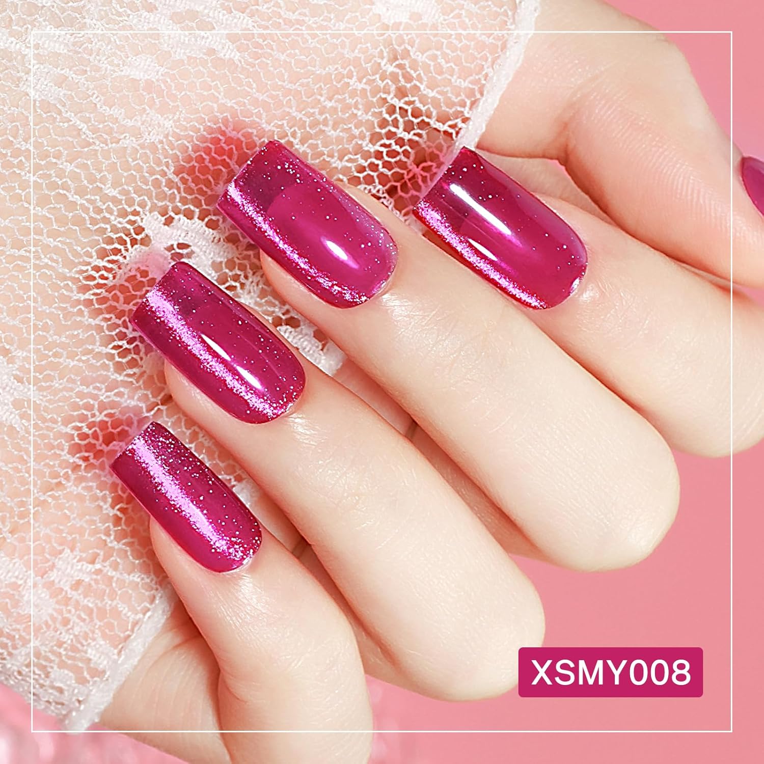 • MIZHSE Neon Pink Cat Eye Gel Nail Polish Kit: 8 colors pink series magnetic gel polish, 1 double-headed magnet stick. Cure under UV/LED nail dryer lamp. All in 1 kit, save your money and time at the nail salon! Enjoy the DIY fun of nail beauty at home. Suitable for natural nails, false nails, acrylic nails, etc.