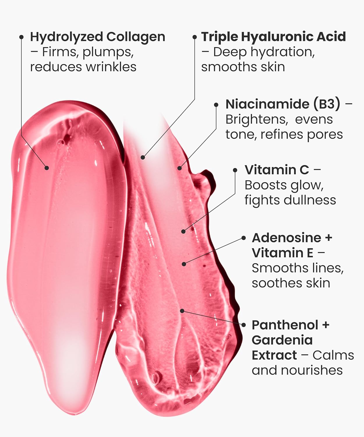 • 🧬 FIRM, LIFT, AND REJUVENATE WITH DUAL COLLAGEN POWER - Our formula combines Collagen + Hydrolyzed Collagen - with smaller molecular weight for deeper absorption, plus Adenosine and Vitamin E (Tocopheryl Acetate) to visibly firm skin, smooth fine lines, and restore elasticity