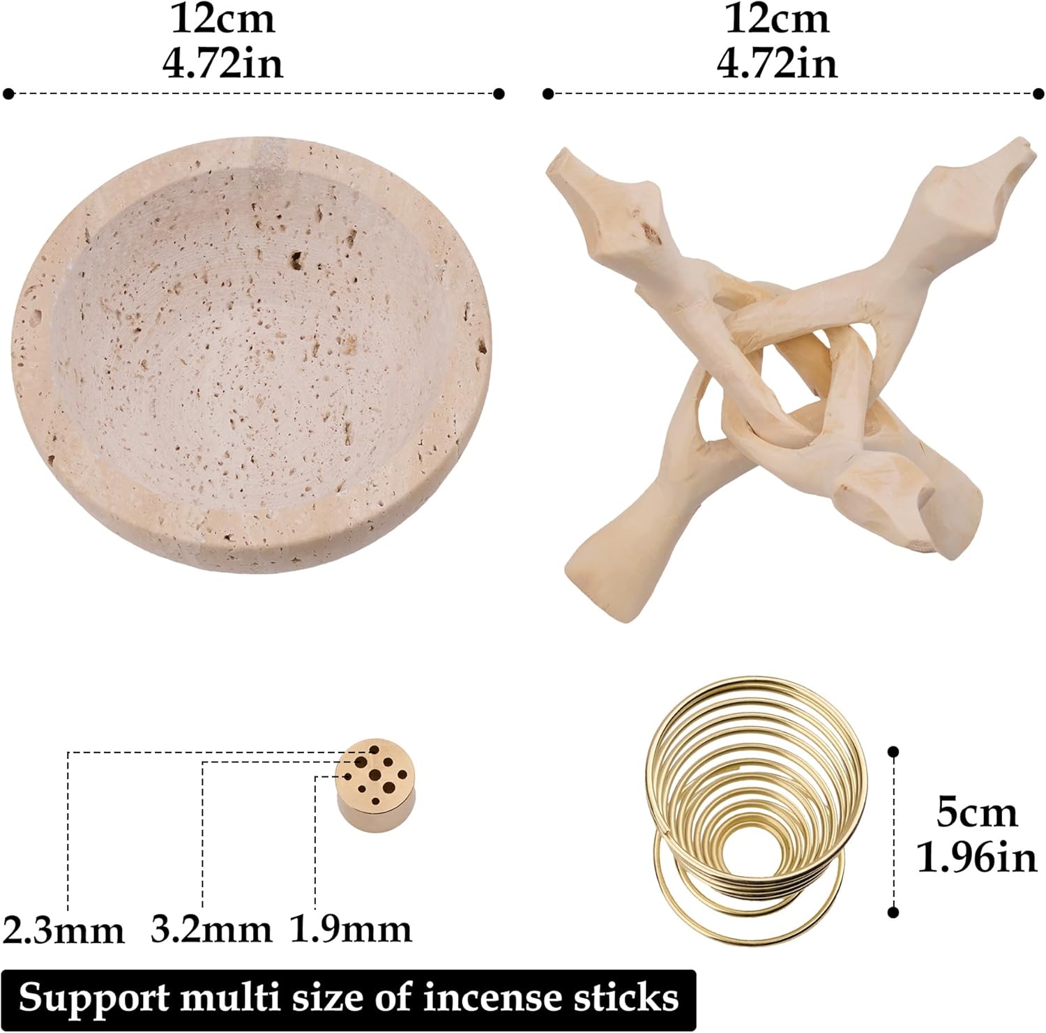 • 【What You Will Receive】: Includes 1 pc 4.72-inch travertine incense holder, 1 pc hand-carved wooden stand, 1 pc palo santo holder, and 1 pc nine-hole incense burner. Please note: White sage bundle and palo santo incense sticks are not included in the package.