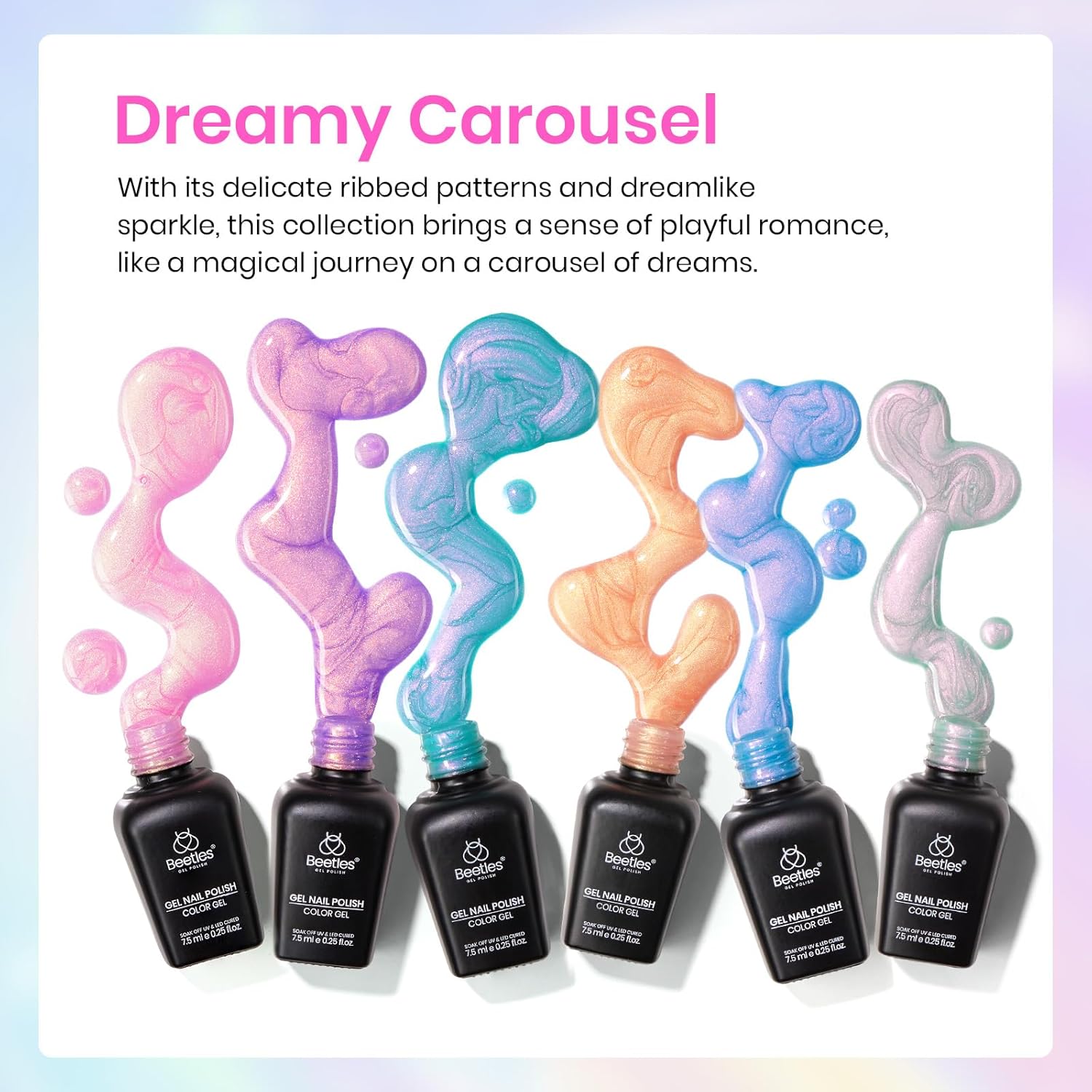 • Beetles Mermaid Collection Gel Polish Set Dreamy Carousel : The package includes 6pcs 7.5ML/ 0.25fl oz summer gel polish with mermaid unique design. This is 2-in-1 summer gel polish,not only can be pearl gel polish but also can be swirl thread nail gel. Color Number: f633-f634-f635-f636-f637-f638