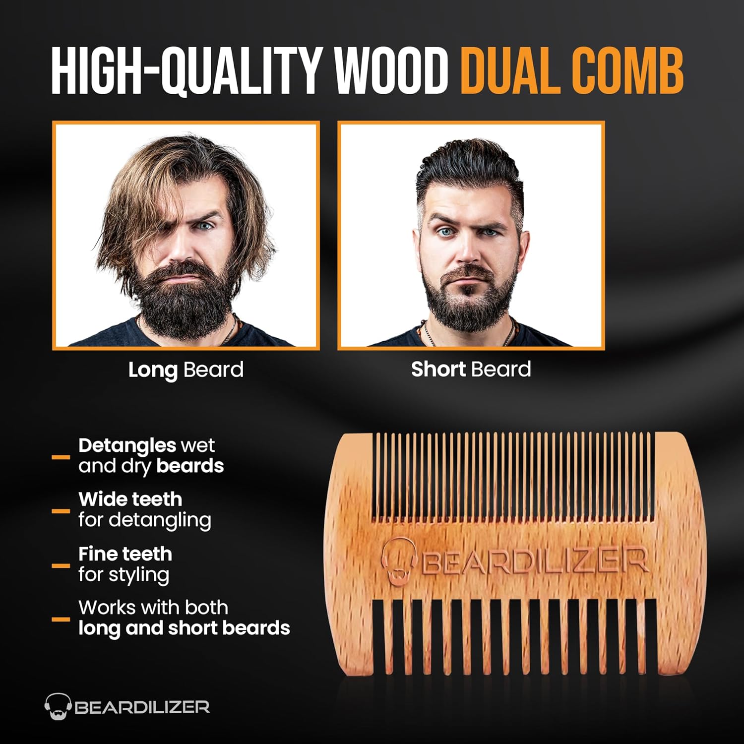 • Premium Walnut Comb: Comb your beard from top to bottom with a luxury beard comb for men. This durable wood beard comb adds a touch of elegance to your grooming routine while effortlessly smoothing your beard