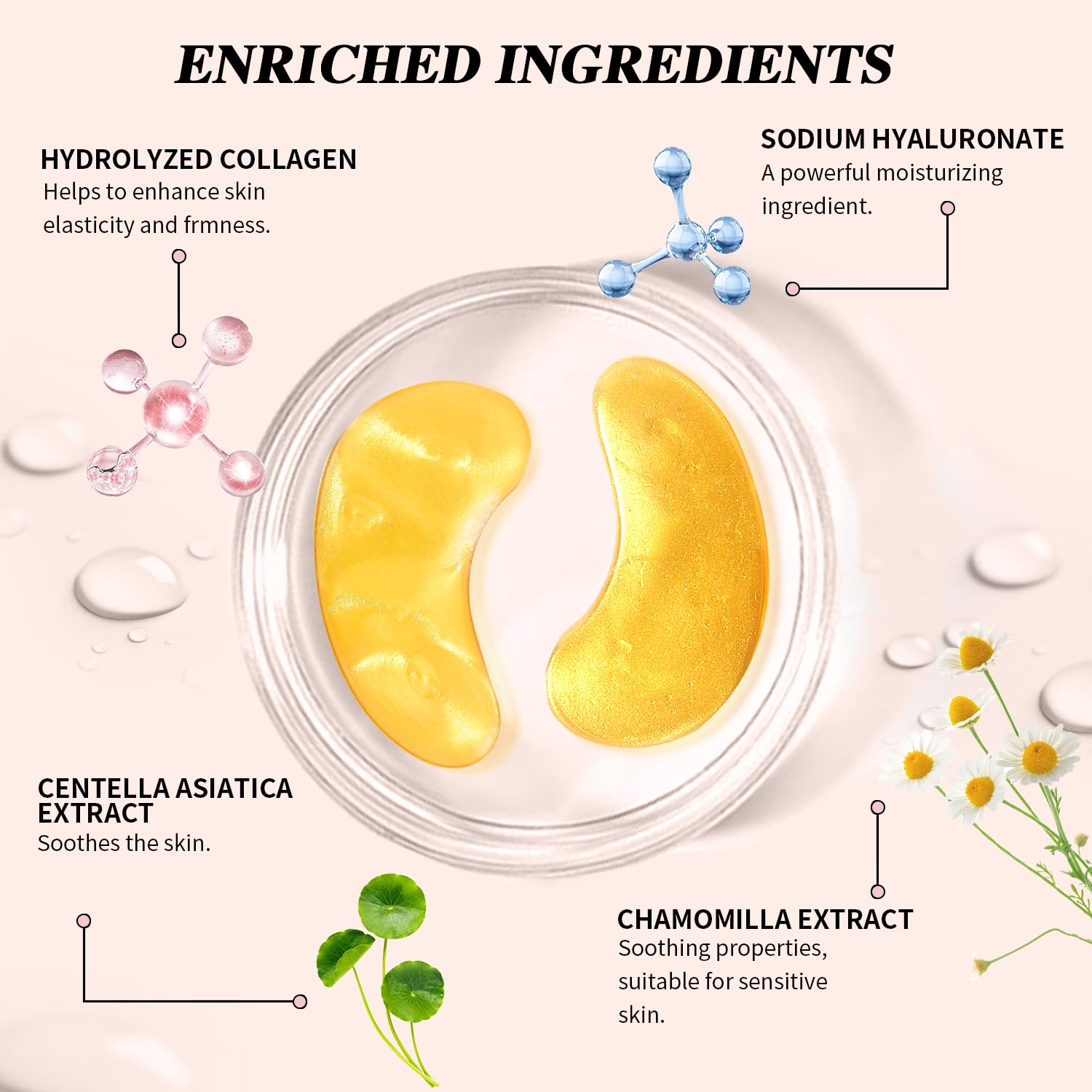 • Anti-Aging Power: Infused with Hydrolyzed Collagen, 24K nano gold, Glycerin, and hyaluronic acid, our eye patches help prevent wrinkles, firm and tighten skin, and reduce sagging. Botanical extracts like centella asiatica and licorice root soothe and revitalize for a youthful, radiant look.