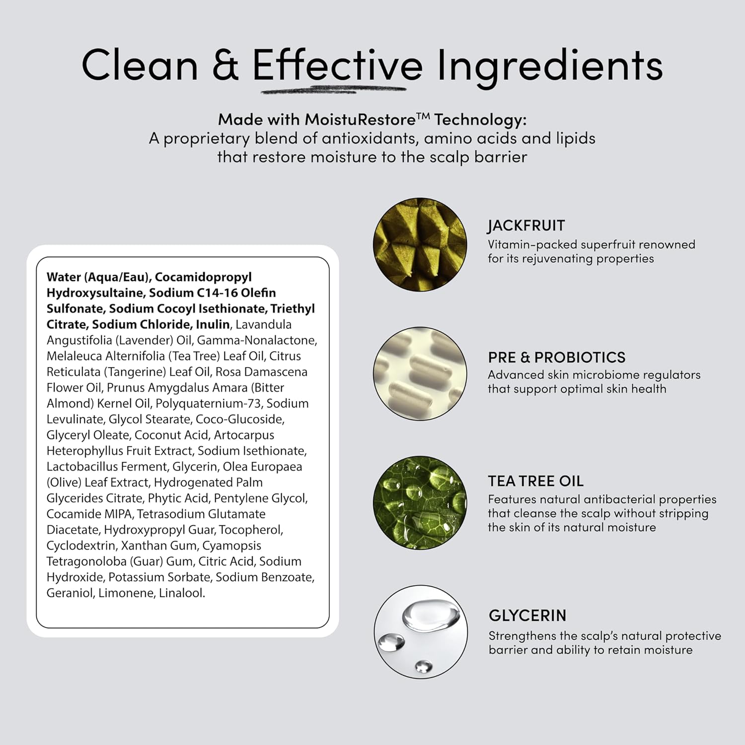• EVERYDAY HYDRATION SHAMPOO: This moisture-rich shampoo works to deeply hydrate from root to tip, leaving hair soft, silky, and manageable. Powered by Tea Tree Oil, MoistuRestore Technology, prebiotics, essential lipids, and proteins, it delivers lasting hydration and reduces hair breakage by over 82%.
