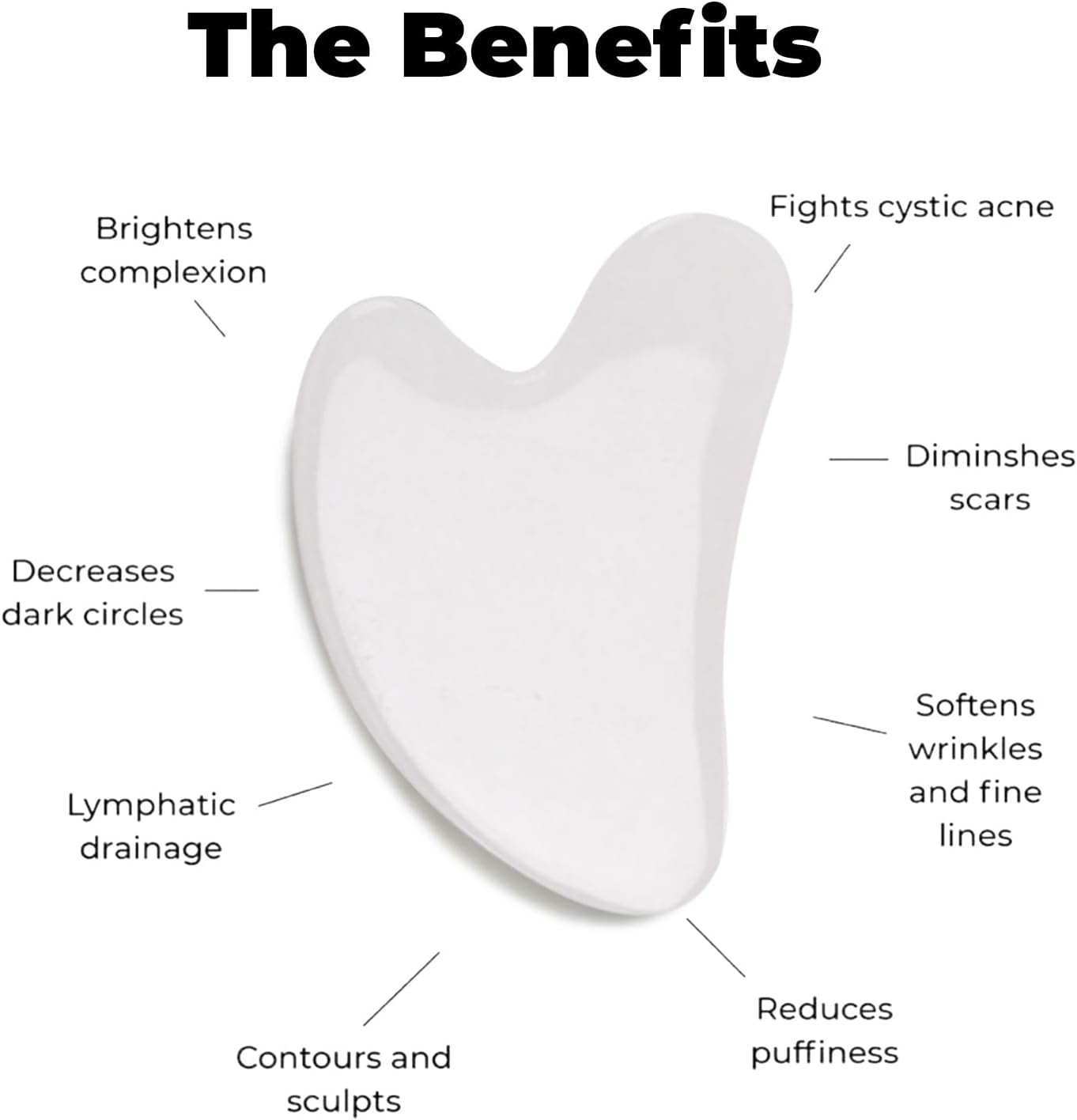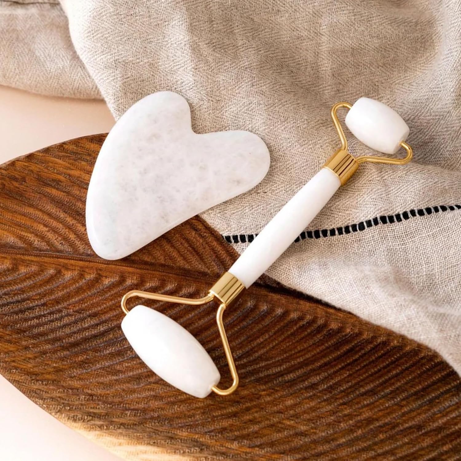 • 2-in-1 Skincare Set – Includes a facial roller for gentle massage and a Gua Sha board for deeper contouring, improving skin elasticity and reducing the appearance of fine lines.