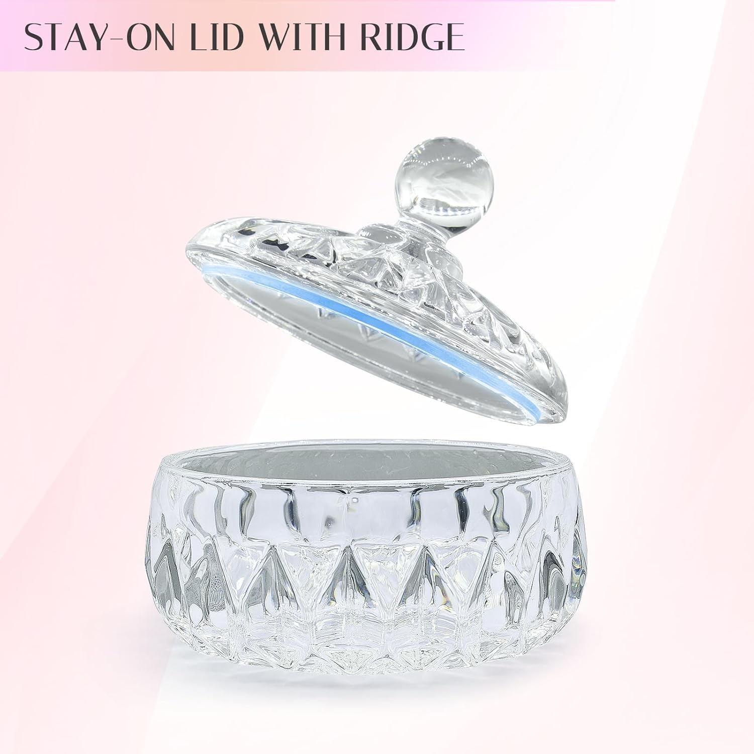 • Elegant Design: The body powder container is made of high-quality crystal glass, the combination of crystal glass and detailed floral carvings creates a luxurious, timeless look that enhances any space. The container lid with ridge securely latches into the base, reducing the risk of being knocked over, and effectively protecting the body powder from moisture and dirt.
