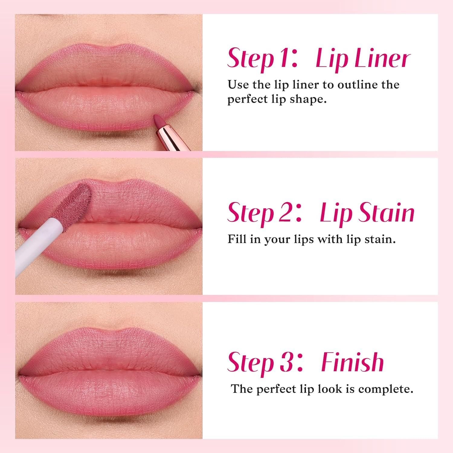 • 【Easy to Apply & SAFE FORMULA】 Begin by outlining your desired lip shape with the lip liner, then fill in your lips with lipstain to achieve the perfect look. Beginners can also use it easily. Meanwhile, we use safe vegan formulas that are not tested on animals, so you can use them with more confidence.