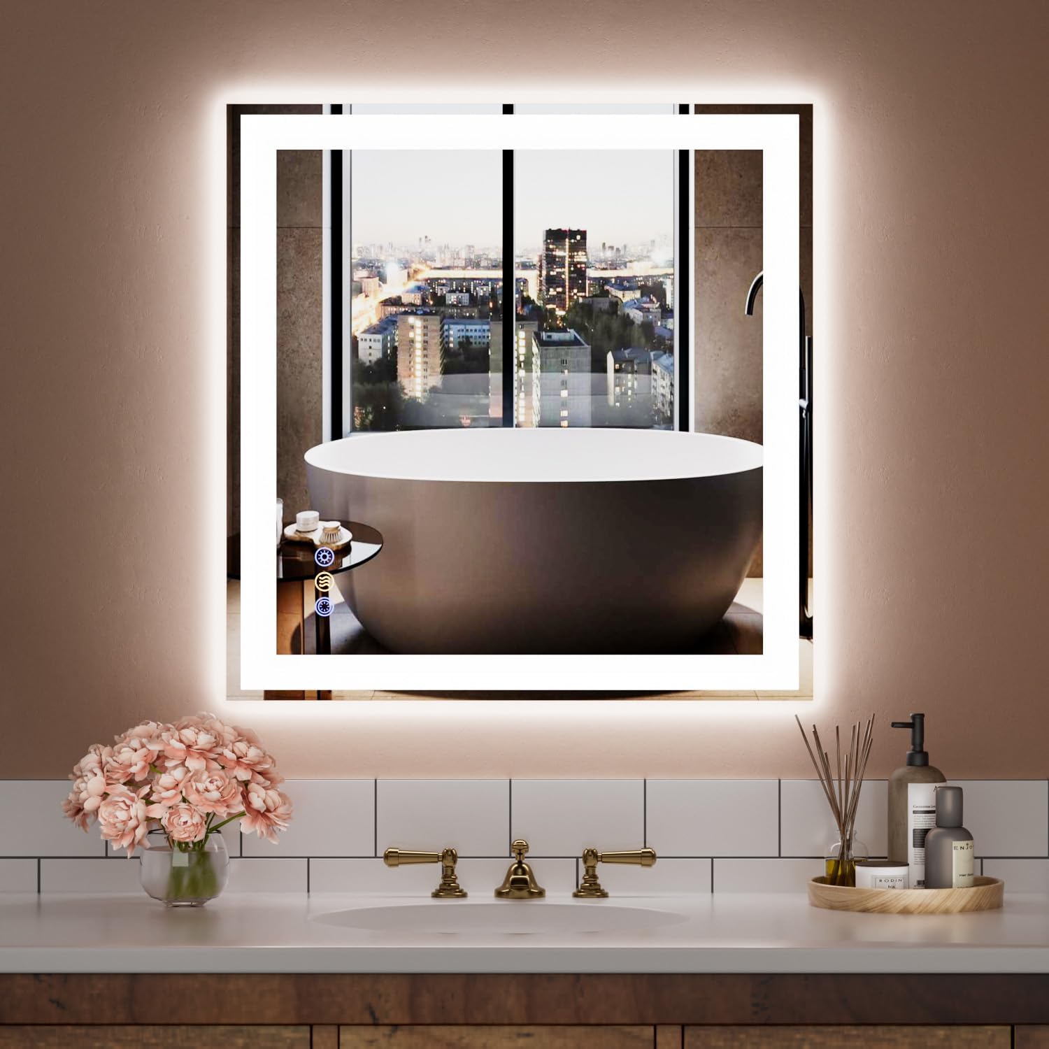 • 【36x36in Smart Mirror with Memory & Anti-Fog Function】This smart LED bathroom mirror is equipped with a memory function that recalls your last brightness color temperature and anti-fog settings, saving time every time you use it. The built-in fast-heating anti-fog feature activates a safe heating coil that begins clearing the mirror from the center outward within 3 minutes. Smart, safe, and efficient—designed for modern daily use