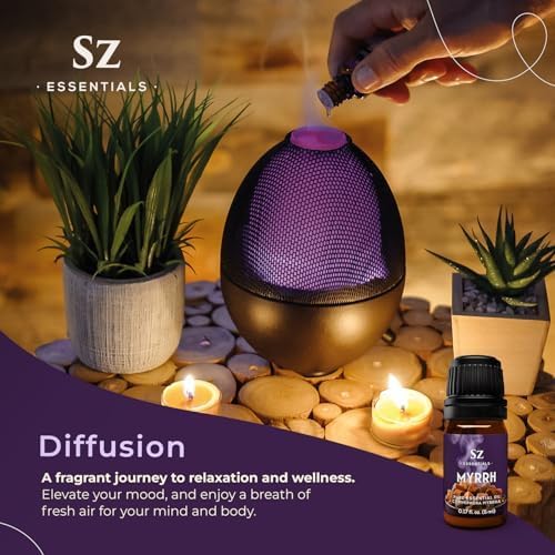• Create an Inviting Atmosphere: Diffuse Myrrh Essential Oil to fill your space with its calming, earthy aroma—perfect for unwinding after a long day or setting the mood for quiet reflection