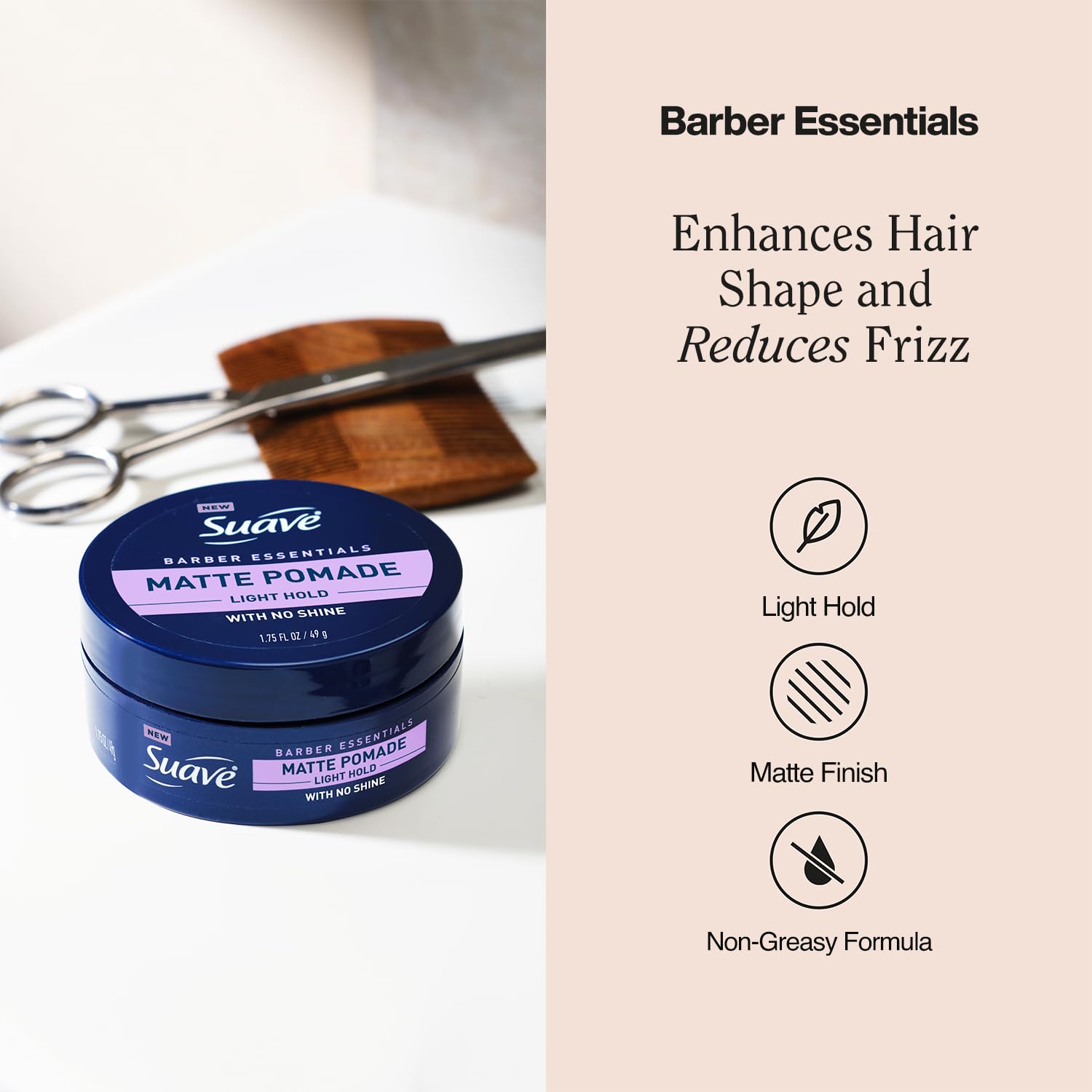 Suave+ Matte Pomade for Men’s Hair Styling 4-Pack – Light Hold, No Shine, Shaping Cream & Frizz Control, Barber Essentials, 1.75 Oz Ea