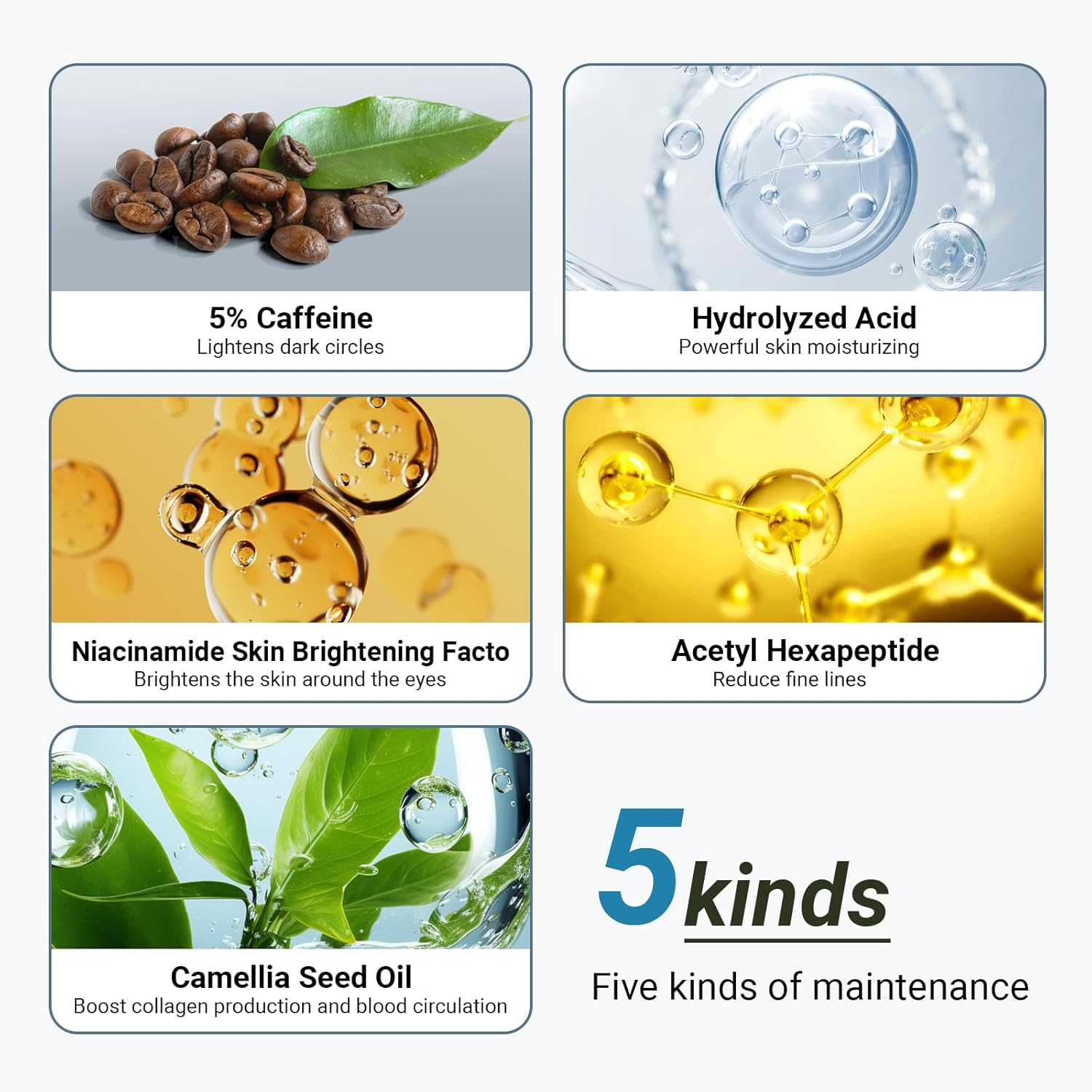 • Caffeine eye cream: Hicream Eye Serum with 5% Caffeine, reduce puffiness, dark circles, fine lines and wrinkles around the eyes, It deeply hydrates the delicate skin around your eyes, visibly smoothing and firming for a refreshed appearance.