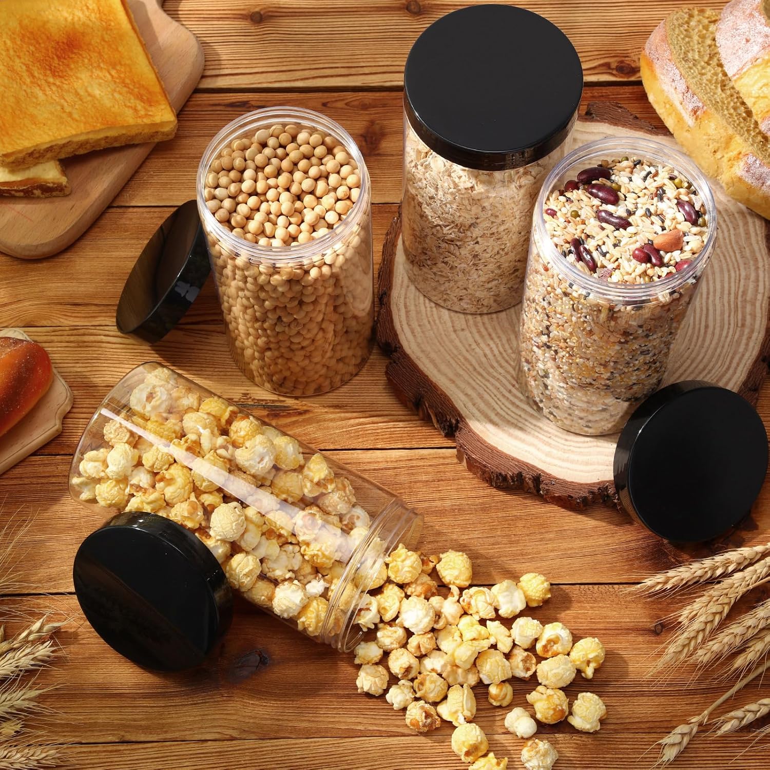 Patelai 4 Pieces Round Wide-mouth Leak Proof Plastic Container Jars with Lids for Travel Storage Makeup Beauty Products Face Creams Oils Salves Ointments DIY Making(32 Ounce,Black)