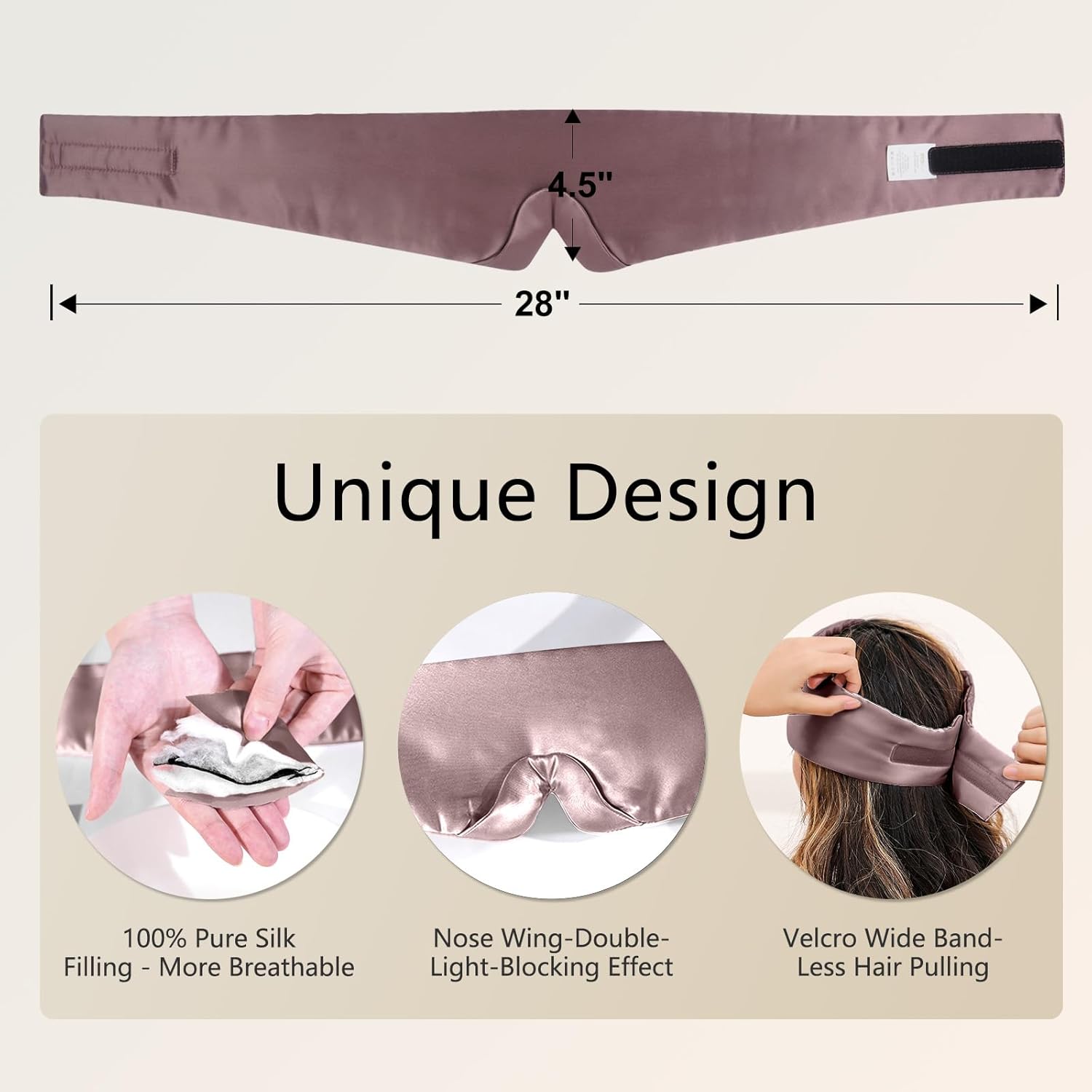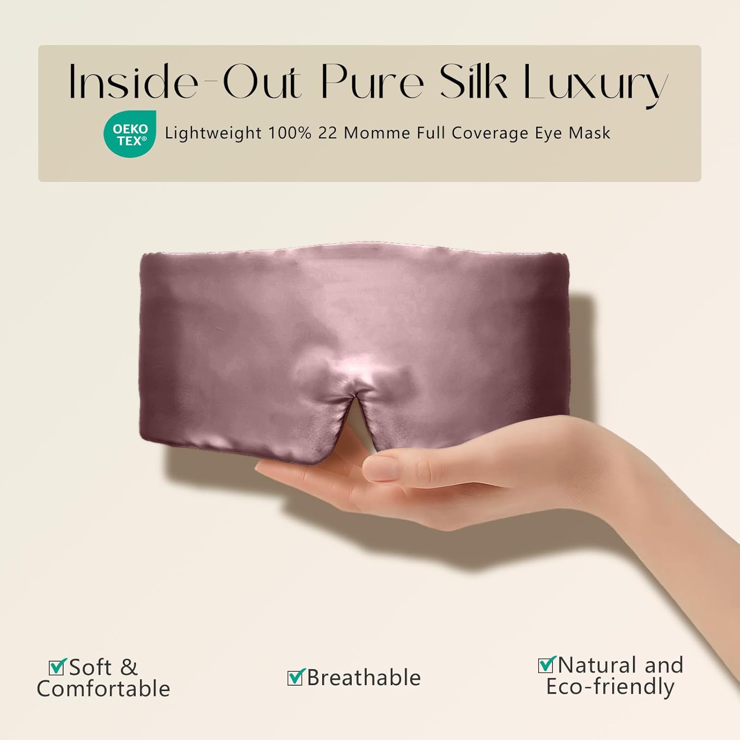 • ✅100% 22 Momme Grade 6A Luxury Construction: Crafted entirely from the highest-grade mulberry silk - including a silk-filled interior - this premium sleep mask delivers superior thickness, gloss, and durability. The full silk encasement ensures unmatched breathability, cloud-like comfort.
