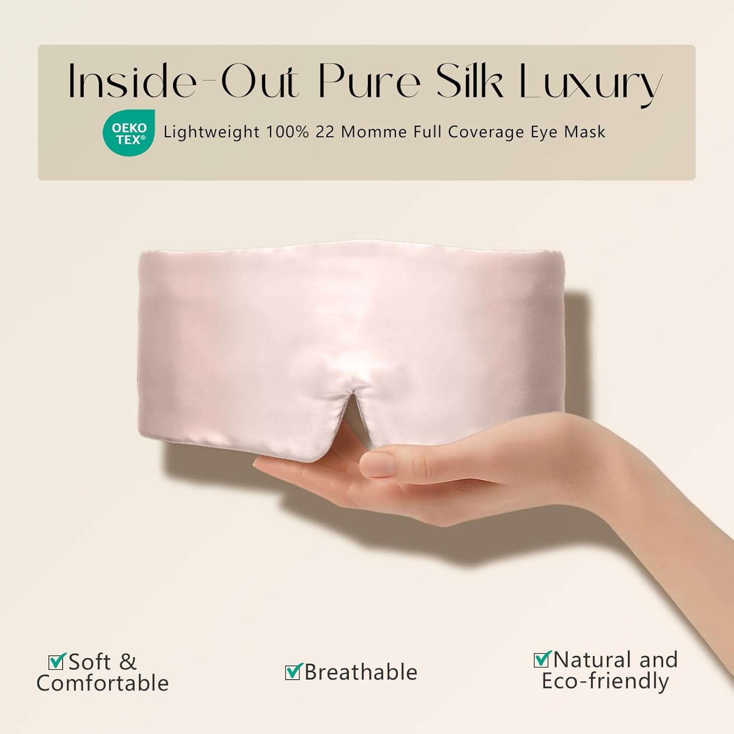 • ✅100% 22 Momme Grade 6A Luxury Construction: Crafted entirely from the highest-grade mulberry silk - including a silk-filled interior - this premium sleep mask delivers superior thickness, gloss, and durability. The full silk encasement ensures unmatched breathability, cloud-like comfort.