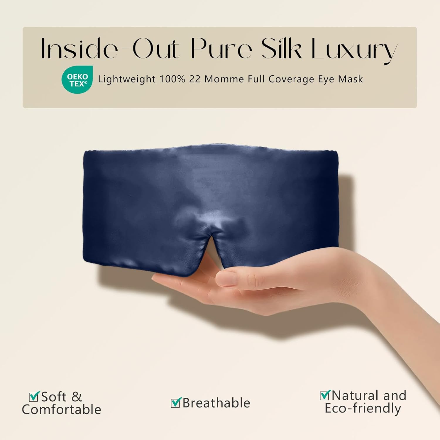 ZIMASILK 100% 22 Momme Mulberry Silk Sleep Mask - Full Silk Filled, Ultra-Soft & Breathable, Face-Hugging Blackout Eye Cover for Sleeping (Navy Blue)