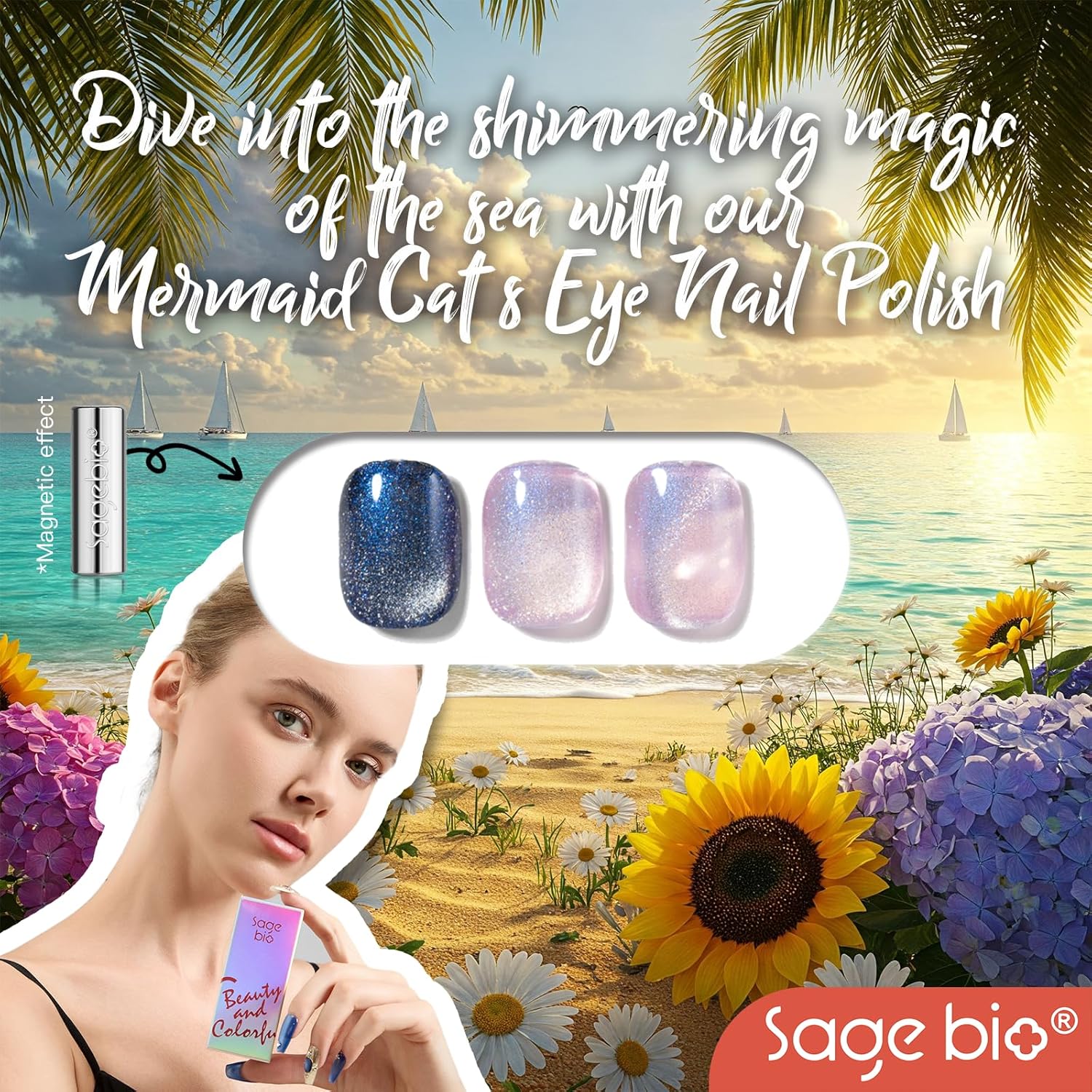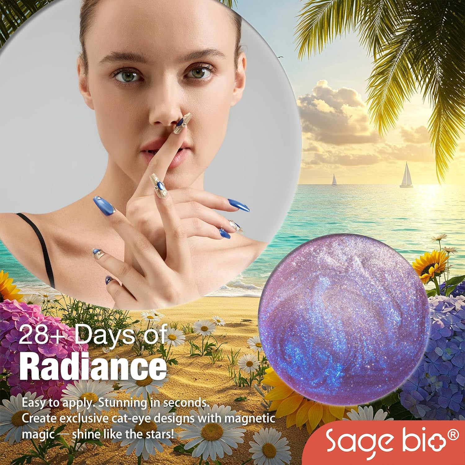 • Captivating 3D Cat Eye Effect: Create mesmerizing, multi-dimensional designs with SAGEBIO's cat eye gel polish. The included magnet stick helps you achieve a dazzling 3D magnetic effect that shifts beautifully with light.