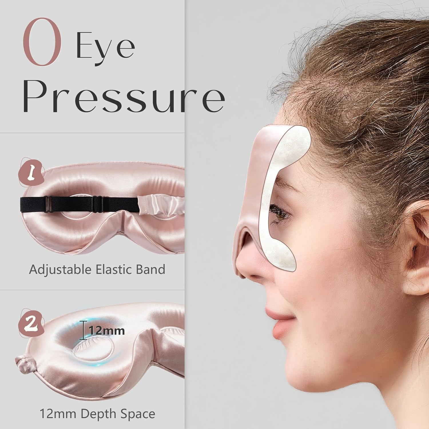 • ✅3D Contoured Design, Comfortable Fit: Features an ergonomic 3D contoured design that perfectly fits the contours of your face, no pressure on the eyes or nose, silk sleep mask provides a barely-there feel.