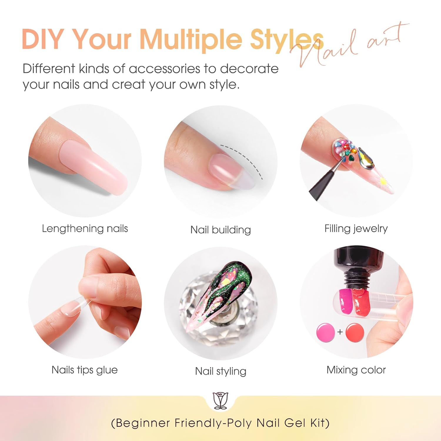 • High Quality & Faster: ROSALIND Poly Extension Gel Nail Kit is made of high-quality raw materials, easy to apply, just follow the right steps and use it without making you feel overwhelmed. With it, you can make this poly gel easy to shape and create naturally beautiful gel nails in less than 3 minutes