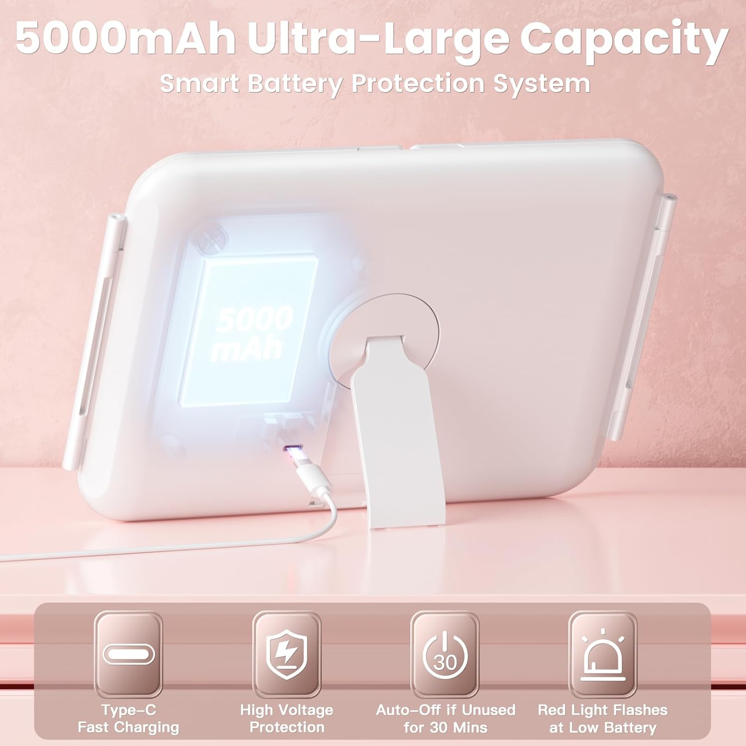 • Rechargeable and Built to Last: Designed as a dependable compact mirror with light, it includes a 5000mAh lithium battery with Type-C fast charging. Reinforced hinges and a solid base provide long-term durability for everyday desktop application when you are in office, at home, or travelling and more.
