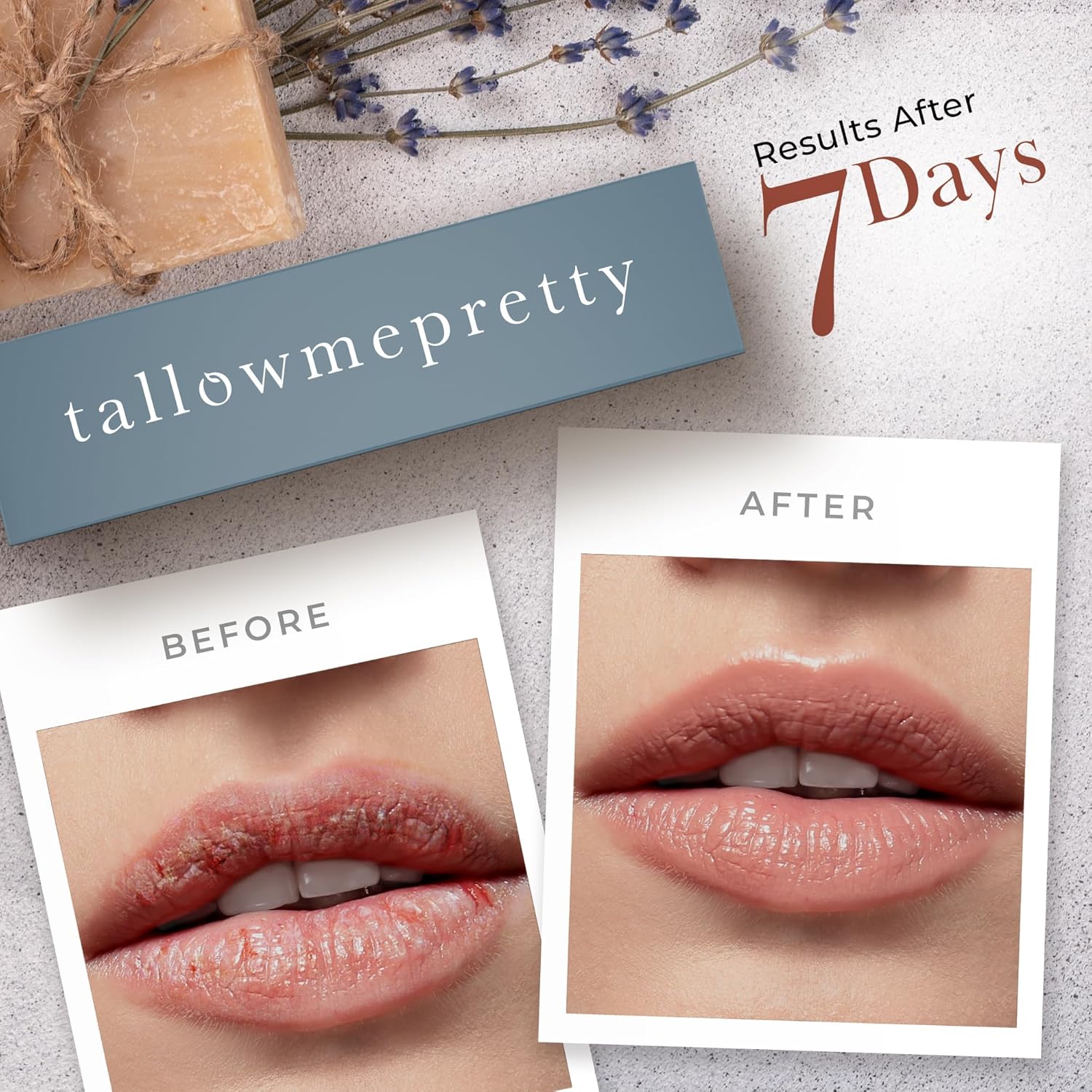 • Round-the-Clock Care for Your Lips: Experience superior lip care with Tallow Me Pretty’s lip balms; They glide on smoothly, soothing chapped lips while forming a protective barrier that helps prevent common issues like peeling, cracking and inflammation
