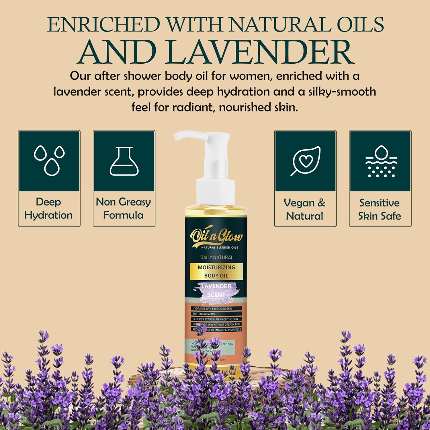 • FREE FROM HARSH CHEMICALS: Our lavender body oil is crafted without parabens, phthalates, artificial fragrances, or harsh chemicals, making it an ideal body oil for women and men with sensitive skin. Powered by nature, this nontoxic, non-comedogenic solution is packed with nutrient-rich oils like body coconut oil, bio oil for scars, and almond body oil. Experience pure hydration with a body oil non greasy finish that respects your skin’s balance and leaves you feeling confident every day.