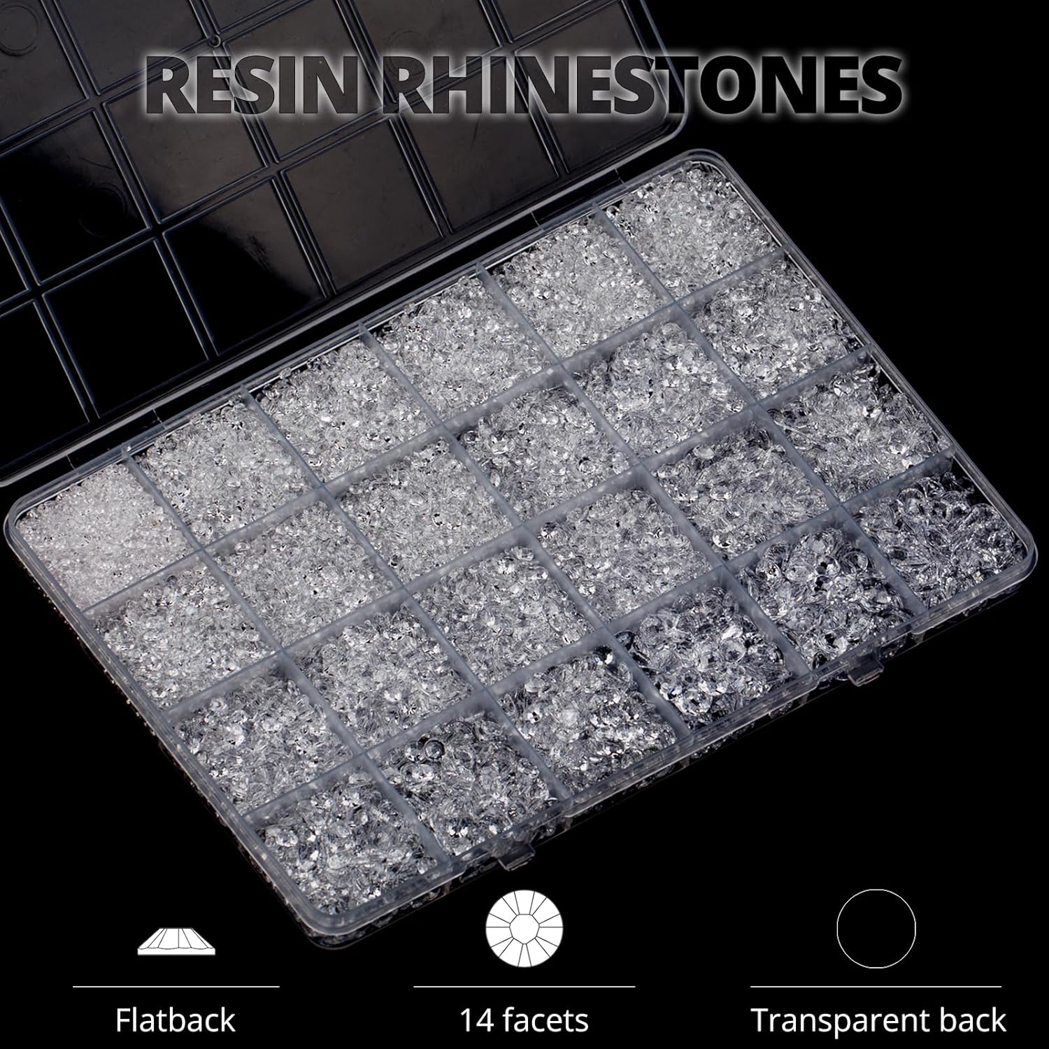 • Package Content with Tool (pickup pen and manual) -- The bedazzler kit Package includes 1 transparent rinestones set with 24 grids, approx. 30000 pcs of 2-6mm bling-out resin rhinestones
