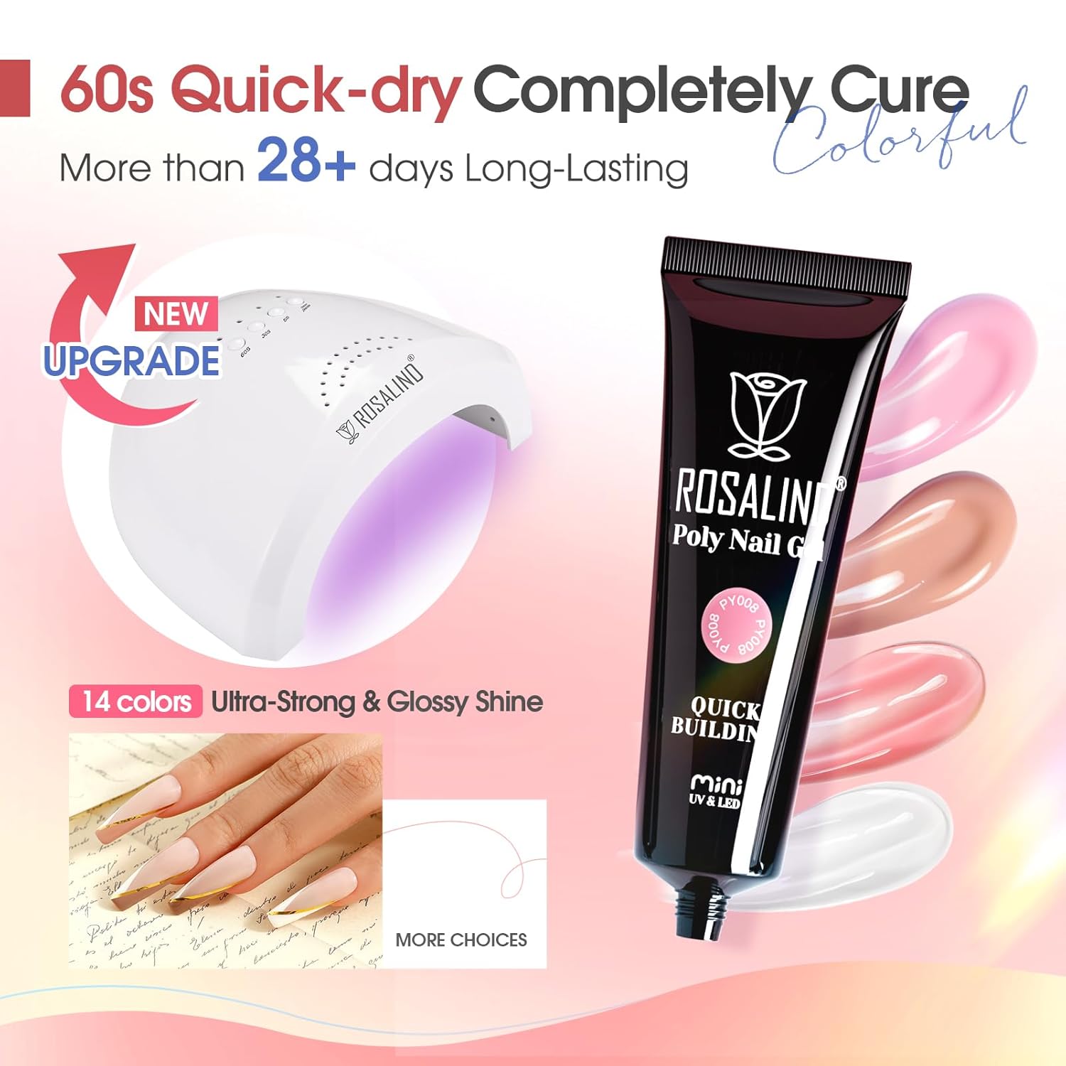 • Long-Lasting: ROSALIND extension gel nails will last up to about one month or longer with proper nail preparation. For better adhesion, you can apply a top coat and primer which can last the nail much longer. With the complete configuration, even a beginner can easily use it by yourself at home.For removing, grit file can help you to remove it cleaner.
