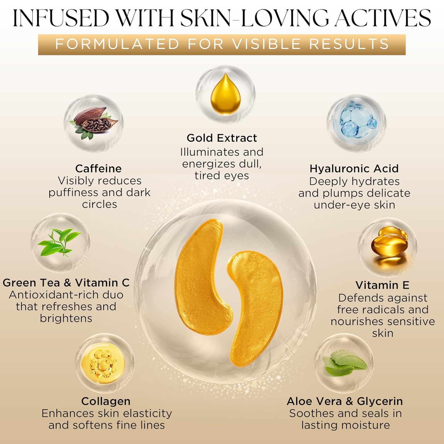 Undereye Mask Patches for Dark Circles, Puffiness & Wrinkles, Gold Eye Mask with Collagen, Caffeine & Hyaluronic Acid, Vegan & Cruelty-Free Eye Patches for Women and Men (24 Pairs)