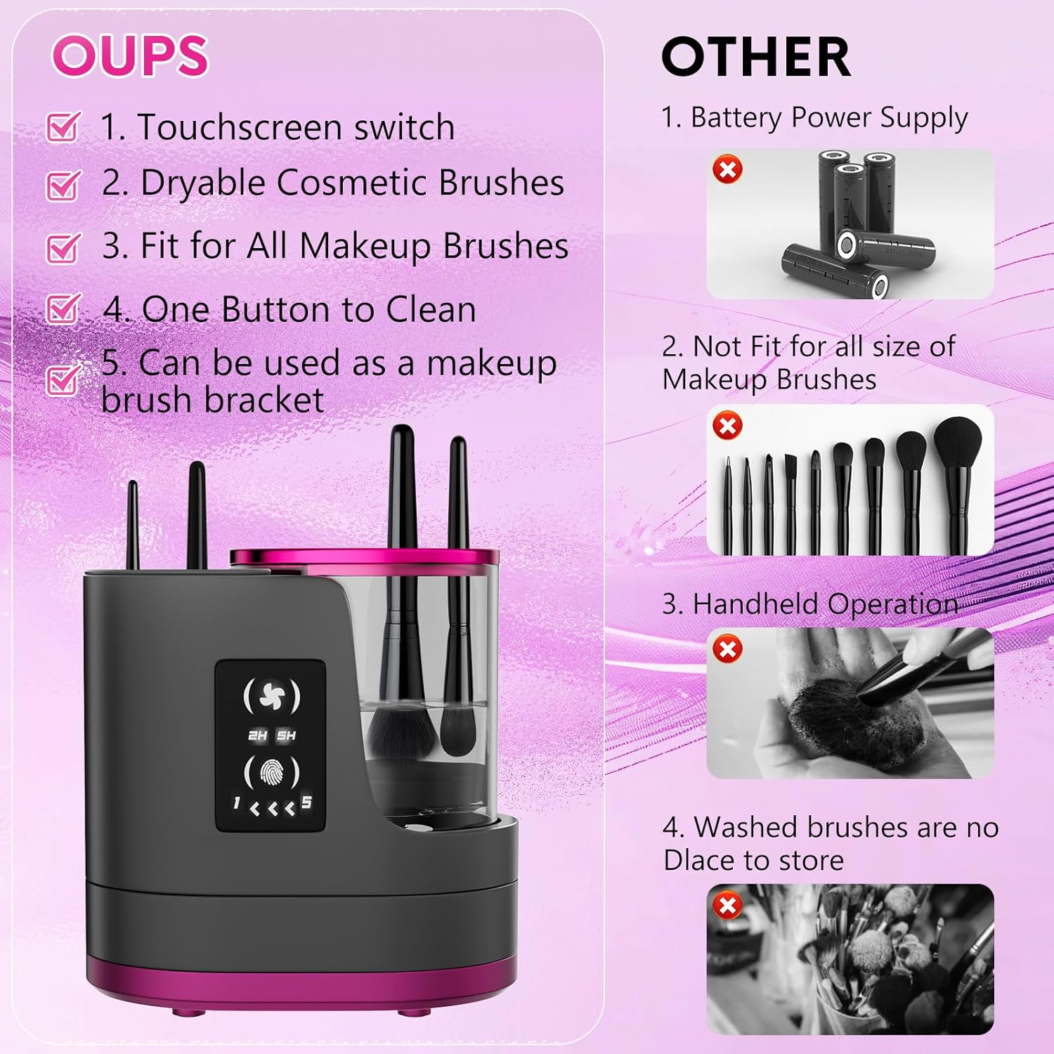 • 【Customizable Drying & Timing】The makeup brush cleaner machine includes a built-in timer offering a 5-minute cleaning cycle, while drying times can be customized (2 hours in summer, 5 hours in winter) for the best results.