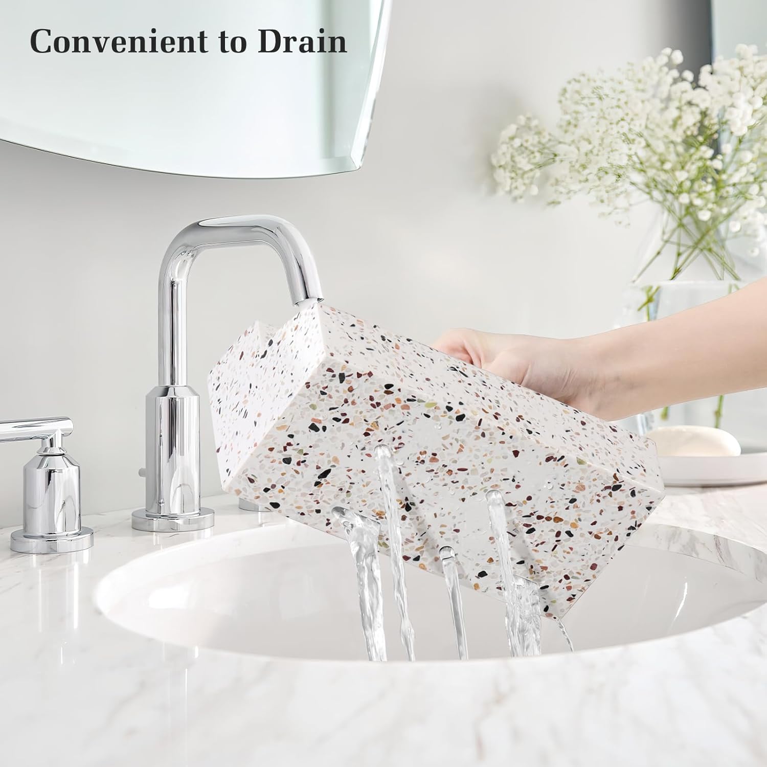 • Look Design: This bathroom organizer countertop features a simple and design-forward look. Each bathroom organizer countertop has a unique pattern. NOTE: Put the toothbrush holder in a ventilated place for 2-3 days to disperse the smell.