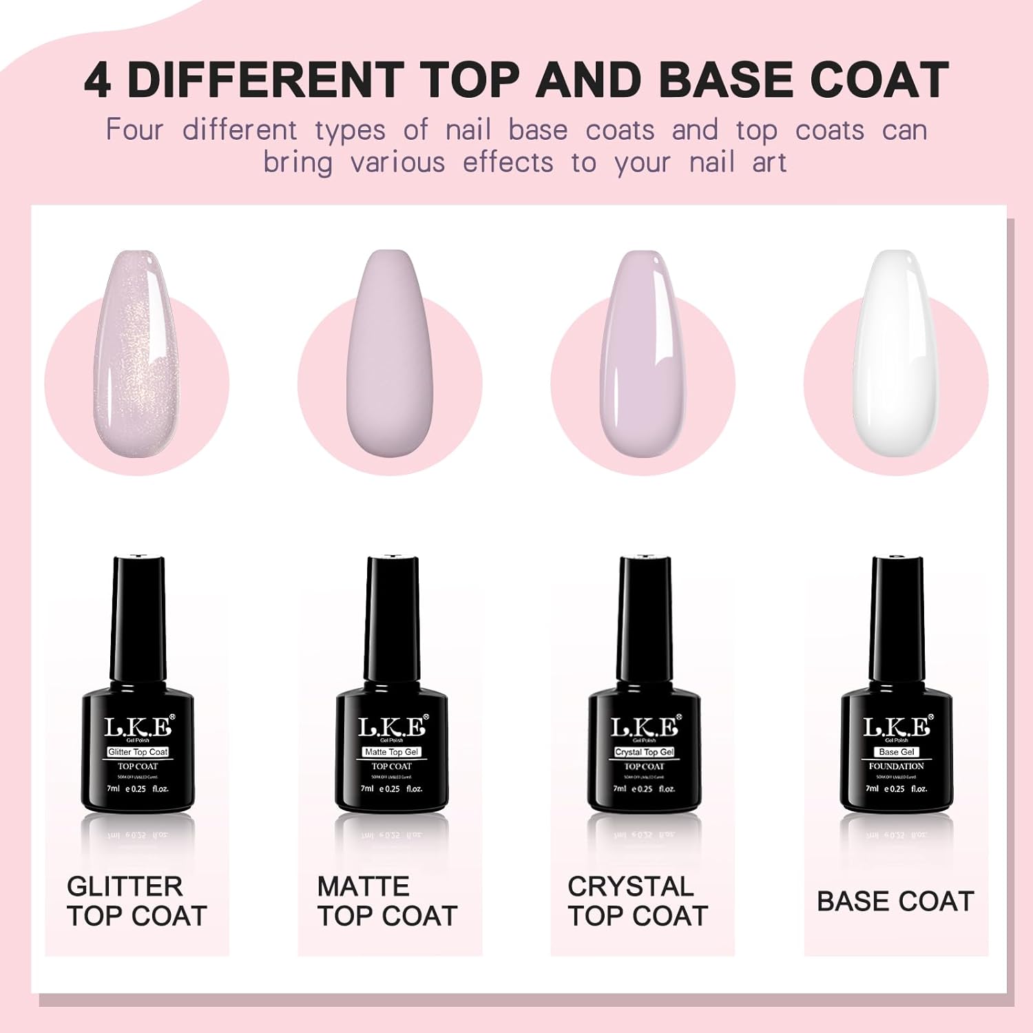 • 【Health & Superior Quality】Made with natural resin and a professional formula, this gel polish is non-toxic and gentle on nails.This gel polish set provides brilliant color payoff and a high-shine finish. The glitter, matte, and crystal top coats add variety and extra protection to keep your nails looking gorgeous.
