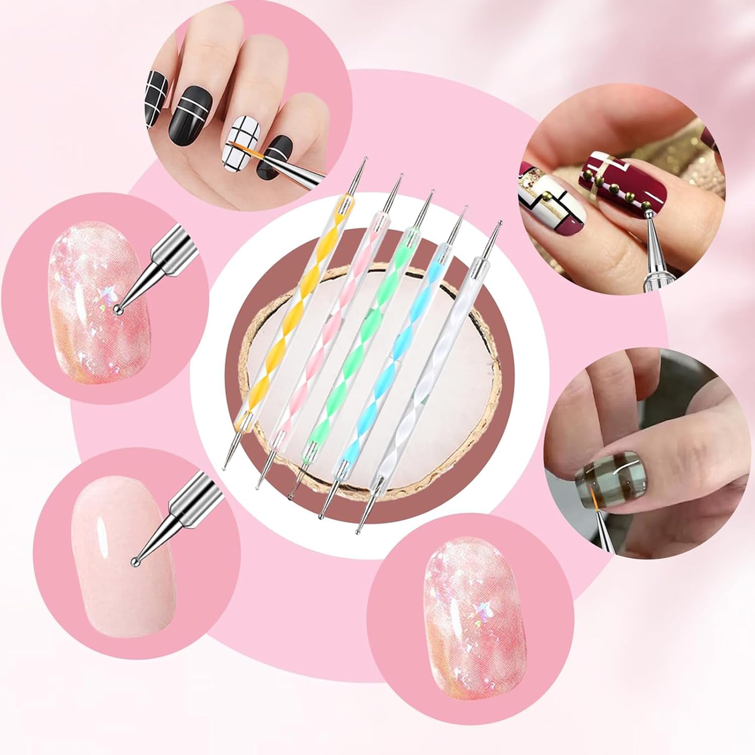 • 【Widely Used】Nail Palette, Acrylic nail brush, Dot pen kit is perfect for professional manicurists and home DIY manicures. Customizable with any color and texture you need, such as blending eyeshadow, lipstick, concealer, foundation, paint and other items, this nail art kit will be the ideal tool.