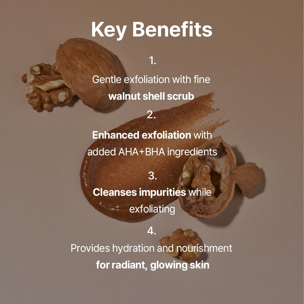 • [Gentle Exfoliation Without Irritation] Harsh scrubbing can strip away even the healthy layers of skin, leading to sensitivity. No need to worry—finely ground walnut shell particles gently remove only dead skin cells without causing irritation.