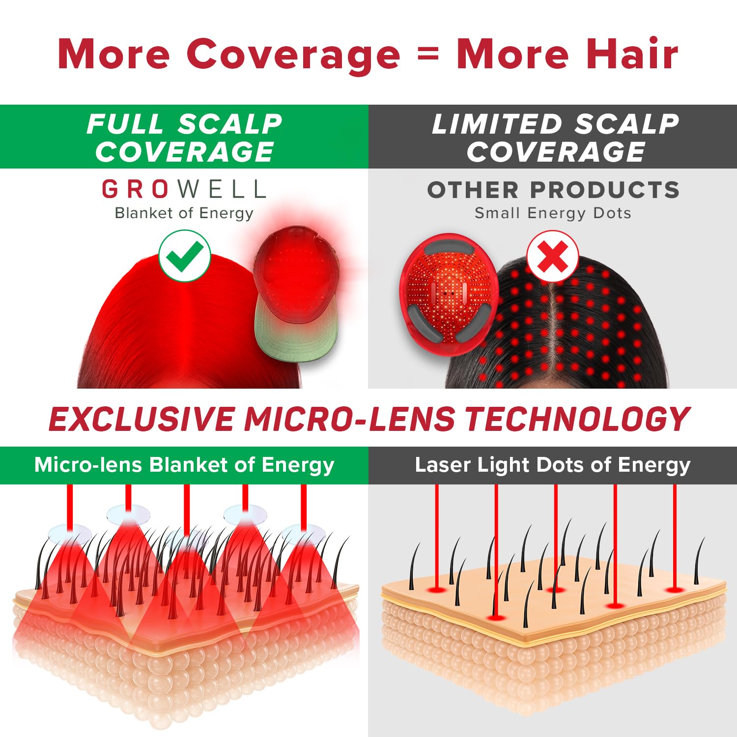 • 100% Effective hair regrowth: Hair loss treatments for women, hair regrowth for men. The GroWell cap from the makers of the first-ever, clinically-proven over-the-counter red light therapy hat for hair growth.