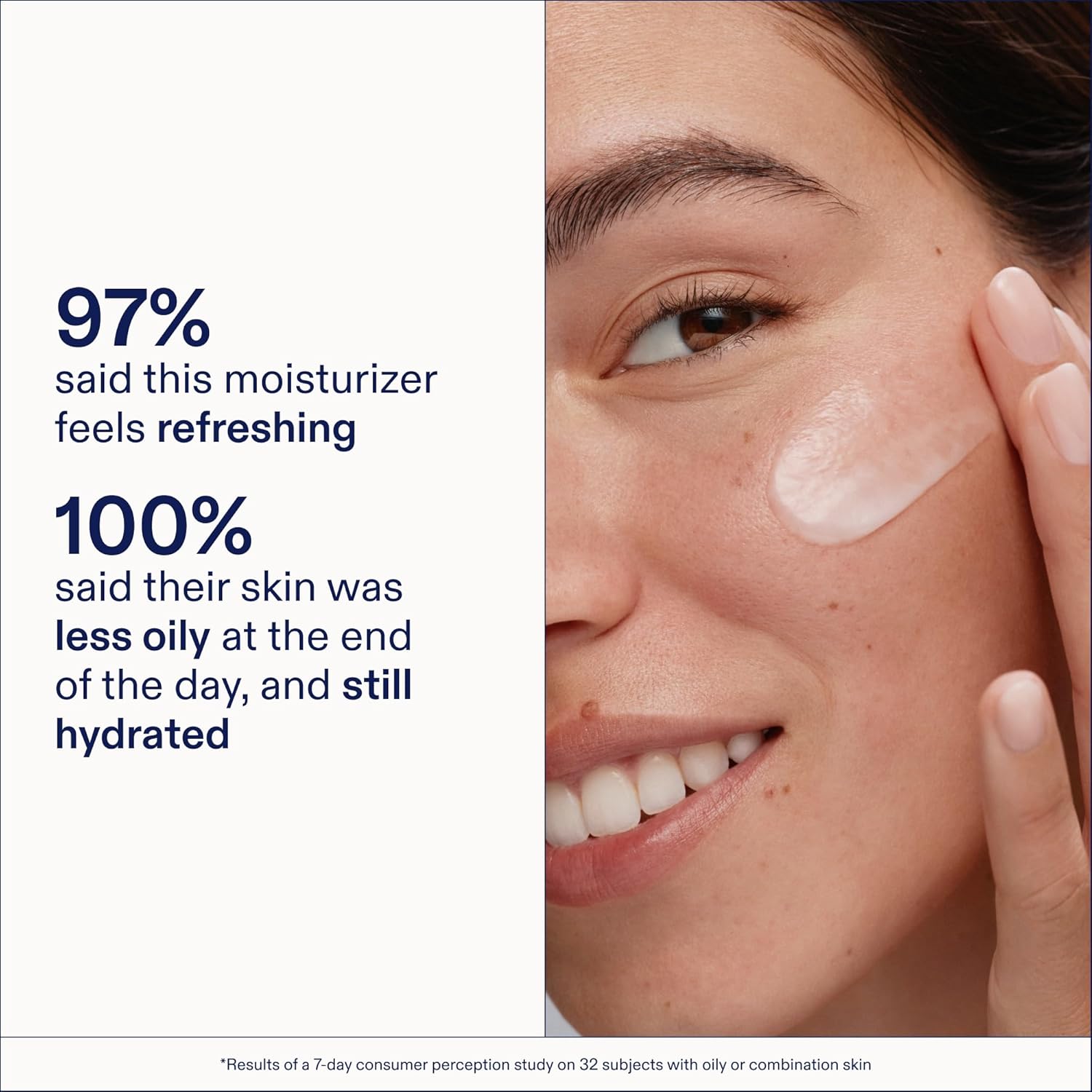 • CLINICAL RESULTS - 97% agreed this moisturizer feels refreshing & said it layered into their routine without pilling. 95% said it feels lightweight on skin. 91% noticed their skin was less oily at the end of the day, and still hydrated.