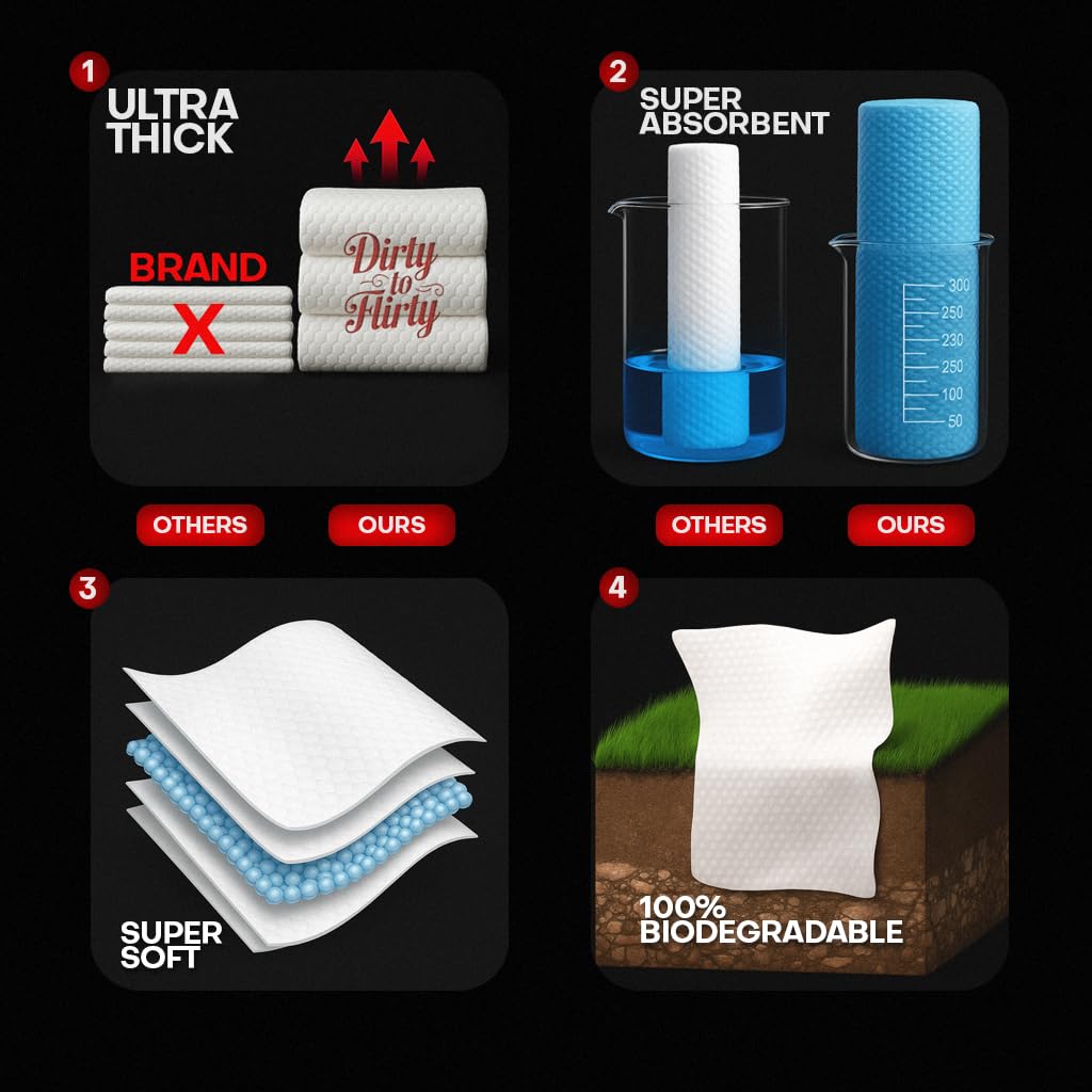 • ULTRA SOFT & GENTLE - Dirty to Flirty face towelettes are crafted to be sensitive to your skin, ensuring a luxurious spa-like experience with the softest materials. Enjoy salon-quality skincare treatments in the comfort of your own home with these indulgent towelettes.