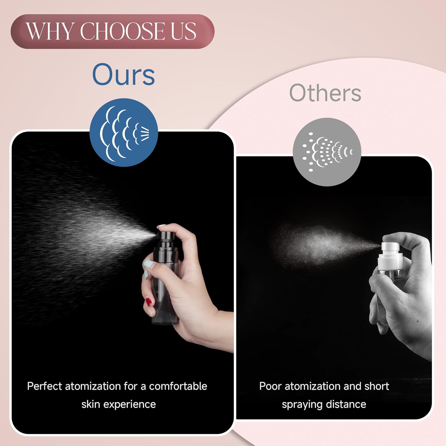 • 【FINE MIST SPRAY】Our travel spray bottles has a unique wide flat head design, which ensures that each spray is fine and silky, evenly covering every inch of skin or surface, bringing you unprecedented comfort and perfect enjoyment.