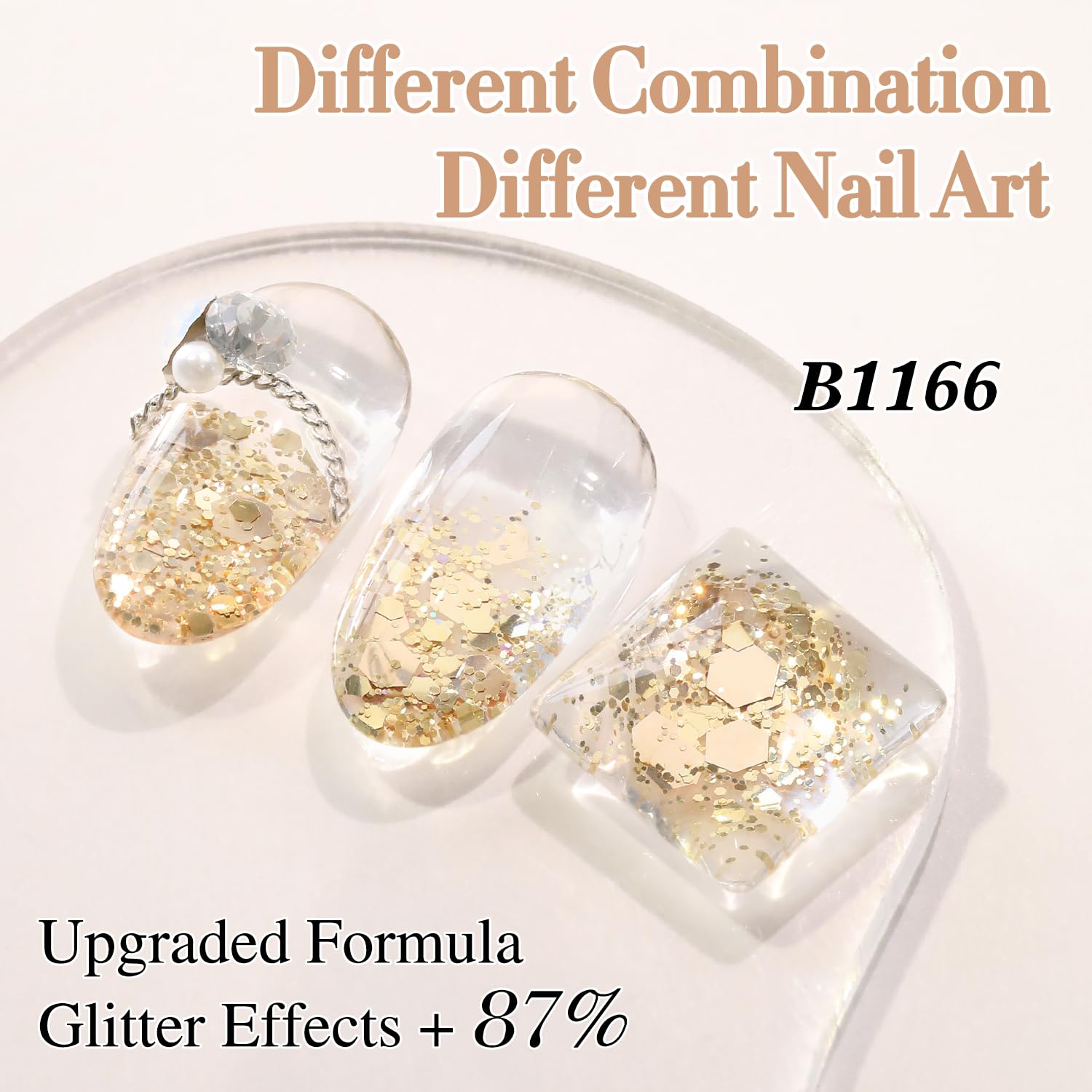 Double Rhythm 0.5Oz Glitter Gel Polish Shimmer Reflective Color for Nail Art Salon DIY Soak Off 15ml Nail Lamp Gel Polish at Home (Golden-B1166)