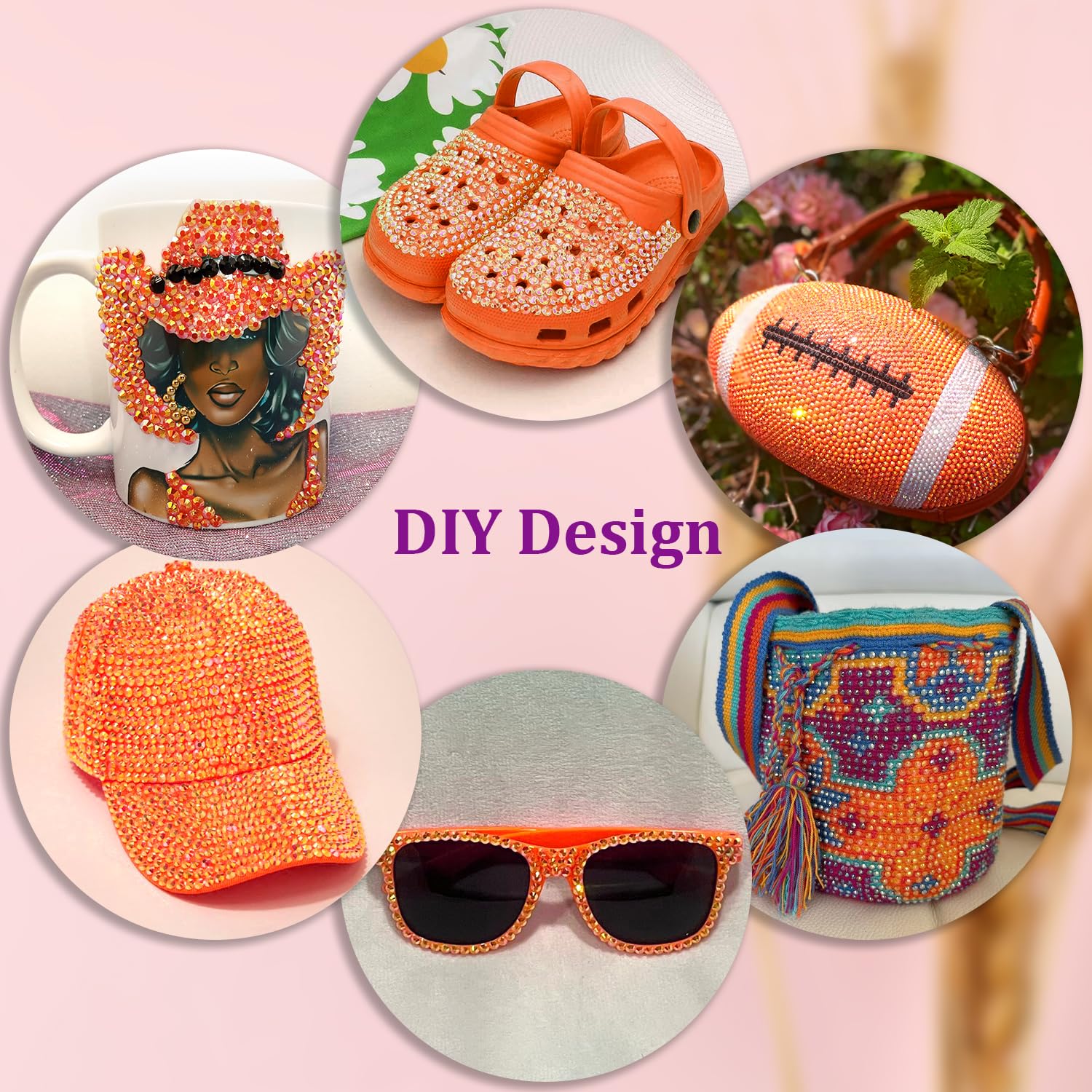 • PACKAGE CONTENT -- Include 1 box with 24 grids, featuring a variety of sizes, approx. 25000 pcs bling-out resin rhinestones (Orange AB). 1 tweezers and 1 pickup pen are included for easily picking up of rhinestones