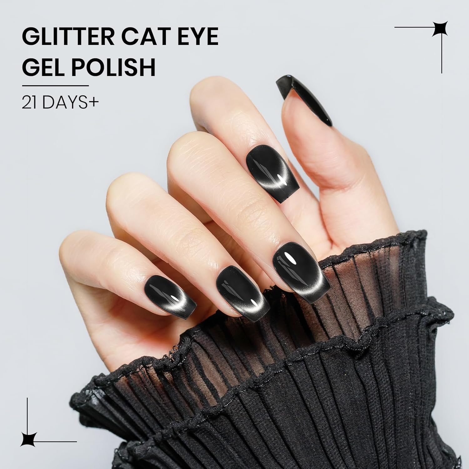 • Upgrade Your Nail with Cat Eye Gel: This black cat eye gel polish delivers a glass-like shine, leaving your nails looking clear and bright. With its upgrade cat eye effects, your nails will stand out from the crowd
