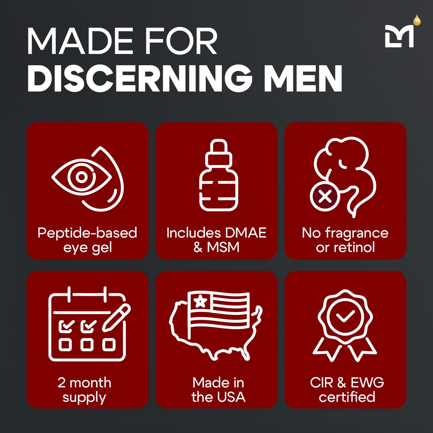 • Potent Peptides Packed in Every Drop: The 4 peptides in this bags under eyes treatment for men lead the anti-puffiness charge; It's also formulated with other well-known, and maybe a few esoteric, best eye bag remover anti-aging ingredients like DMAE, MSM, Hyaluronic Acid, Niacinamide, and Aloe; our best eye bags treatment for men