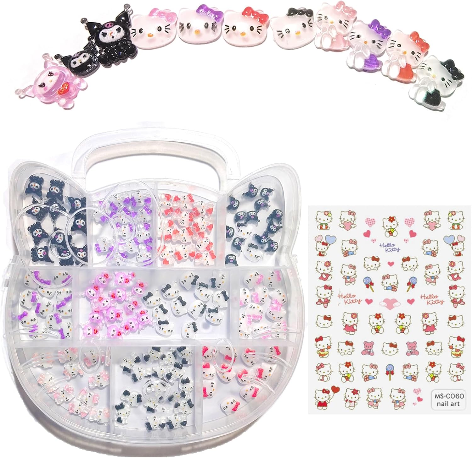 • 【Package Content】122PCS Kawaii Nail Charms, 11 pack 11 different cartoon kitty nail charms.And there's also a beautiful kitty cat sticker. Help you DIY vivid and charming nails