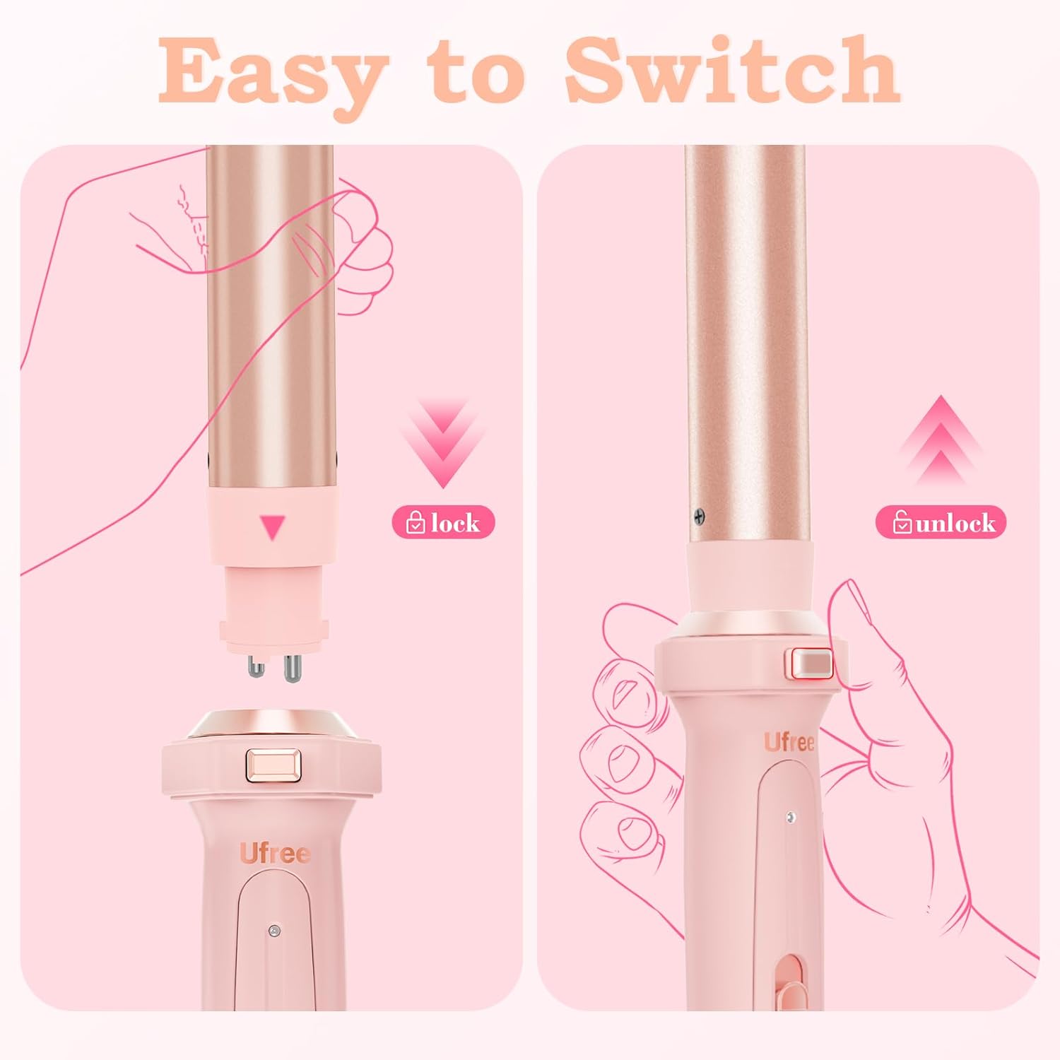 Ufree 5 in 1 Curling Iron with Ceramic Barrels (0.35"-1.25"), Curling Wand Set with Flat Iron Hair Straightener, Instant Heat Up, Dual Voltage Hair Curler, Gifts for Women, Pink