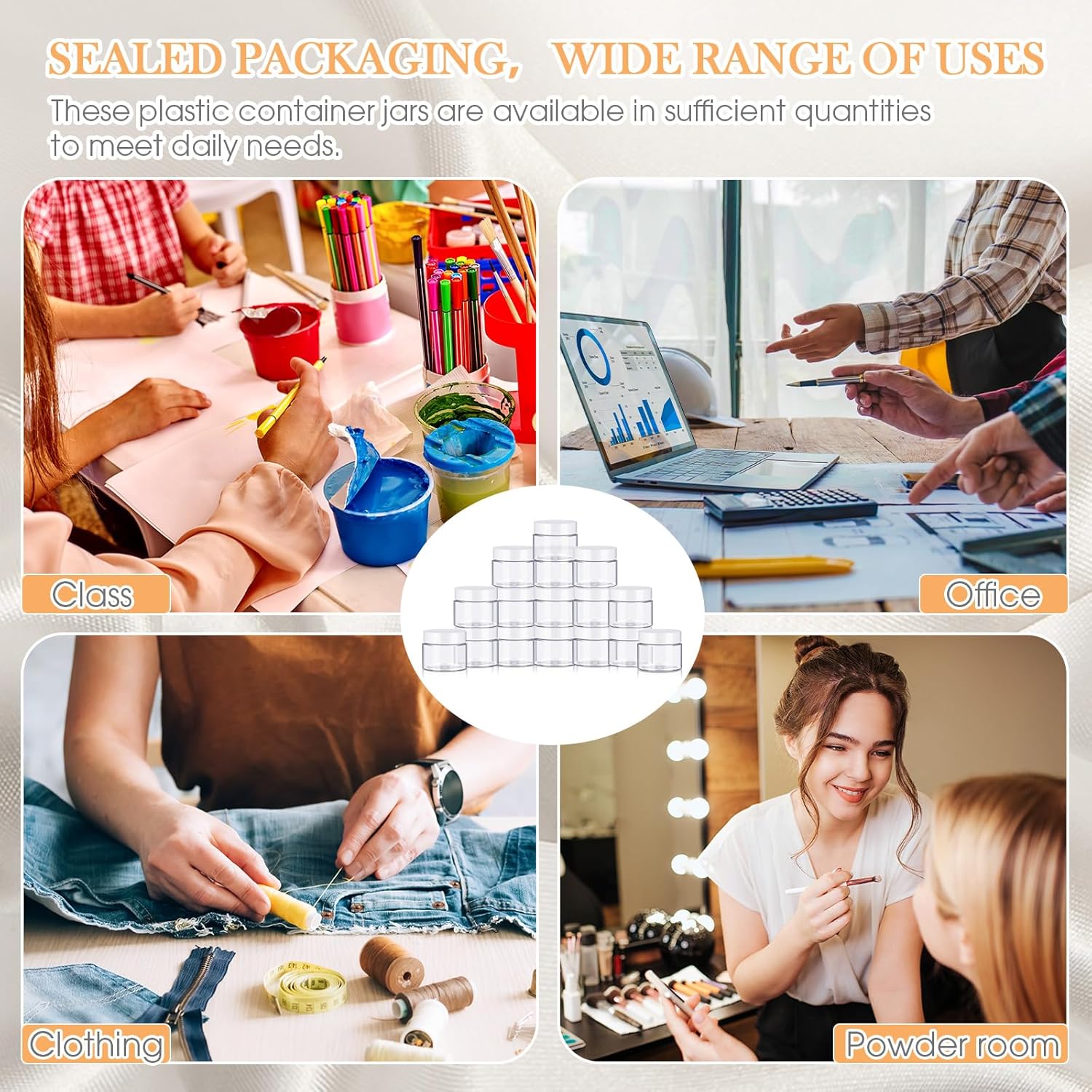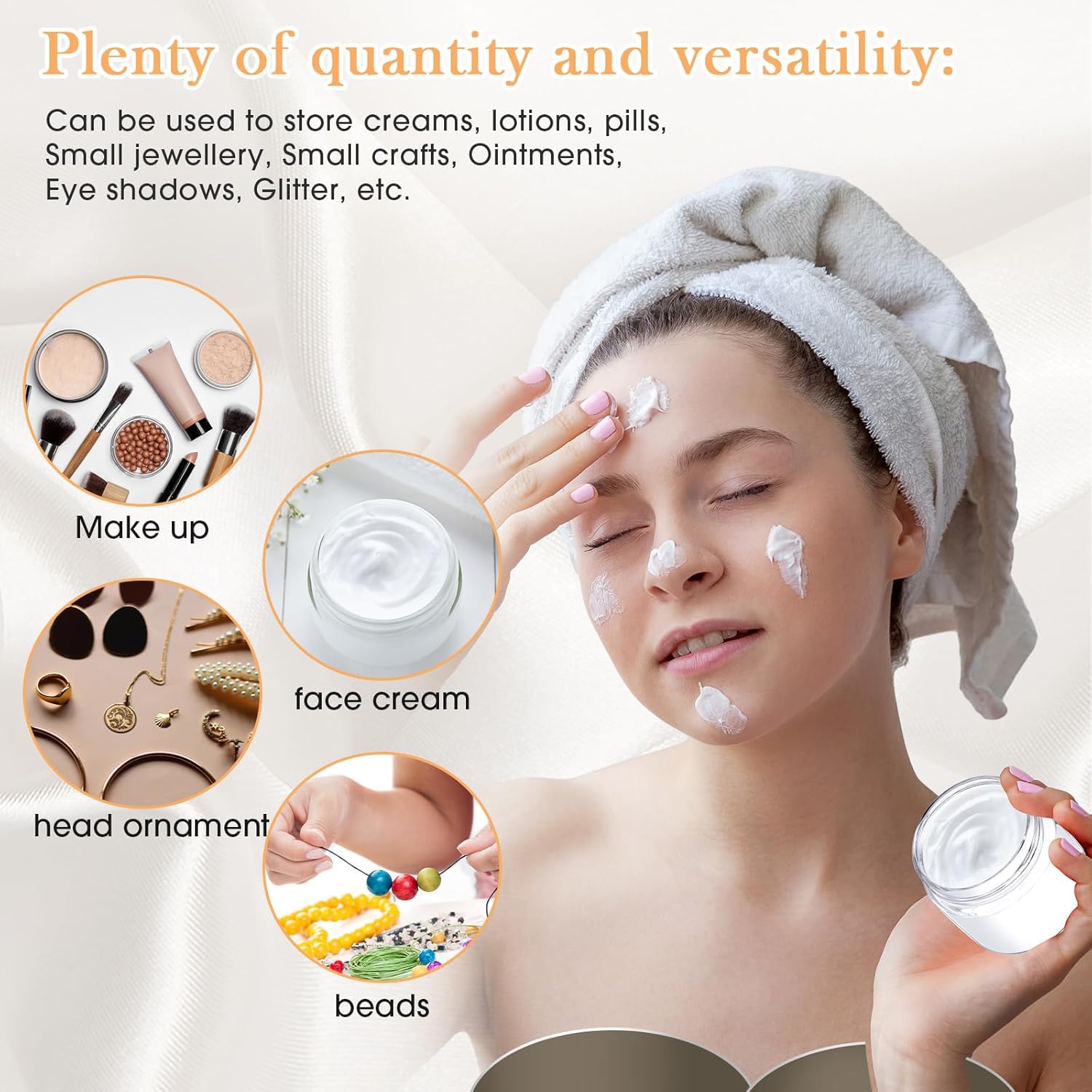 • Multifunctional Containers: you can use these plastic jar containers with lids to store your personal beauty products for travel, ideal to dispense; You can also use it to store homemade sugar scrub cream, body lotions, bath butter soap gifts, body butters and hair moisturizers, small and easily lost jewelry, small crafts like beads, seasonings, acrylic paints, flower seeds, rhinestones etc., which will keep your things organized and make your life more convenient
