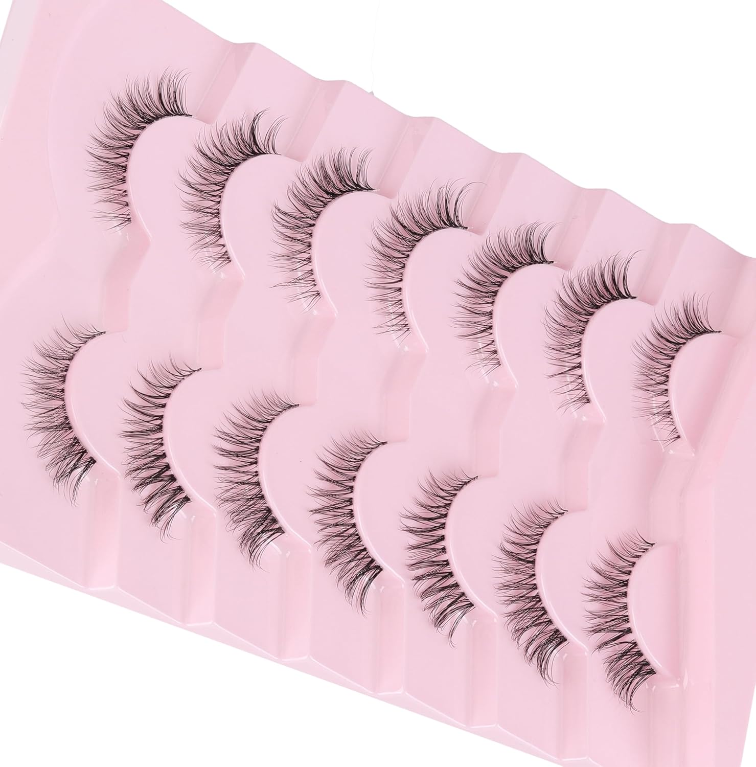 Cat Eyelashes Natural Eye Lashes 12mm False Lashes Wispy Thin Band 3D Volume Fake Eyelash C Curl Lash Pack Natural Look 7 Pair