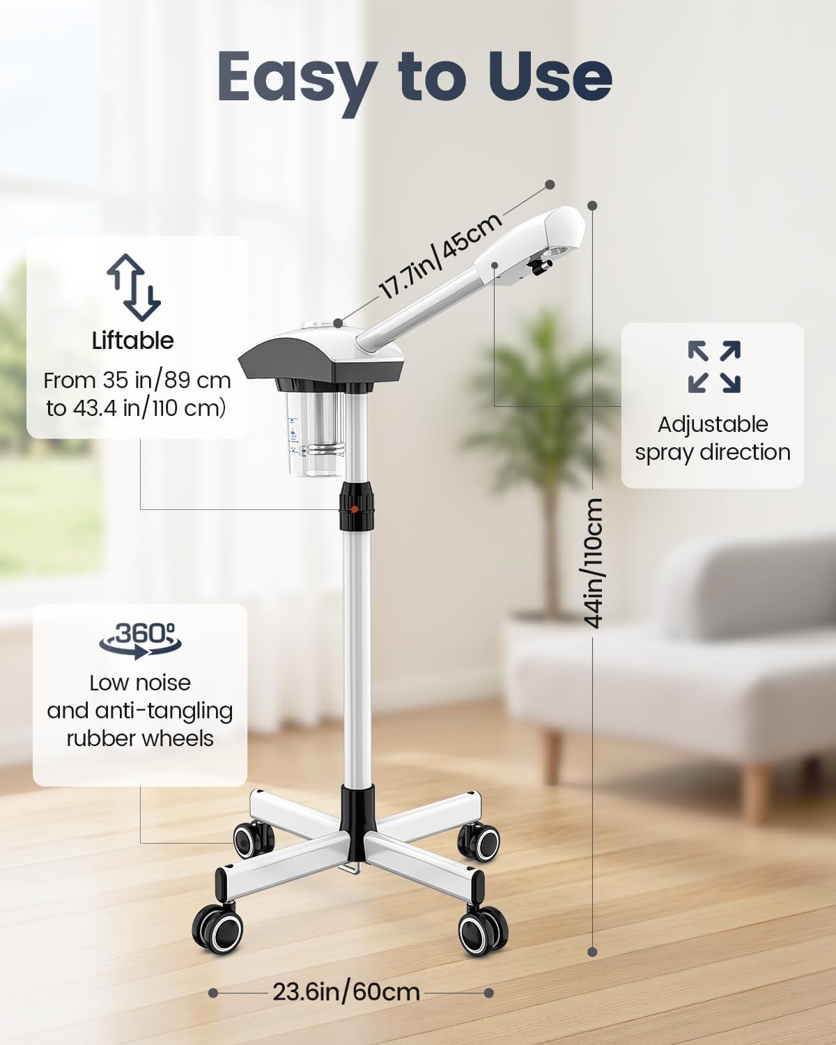 • 🔄 360° Full Coverage Steam & Large Capacity: Unrivaled versatility! The unique 360° rotatable nozzle directs steam precisely to your face, neck, or décolletage. A generous 400ml water tank ensures extended steaming without constant refills, providing efficient and convenient deep cleansing & hydration. An essential beauty tool for esthetician students, makeup artists, and home skincare enthusiasts.