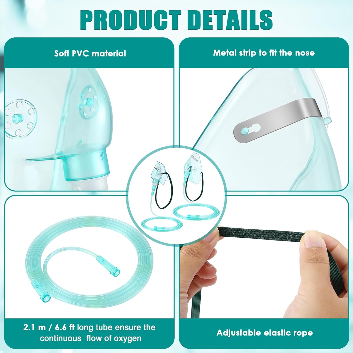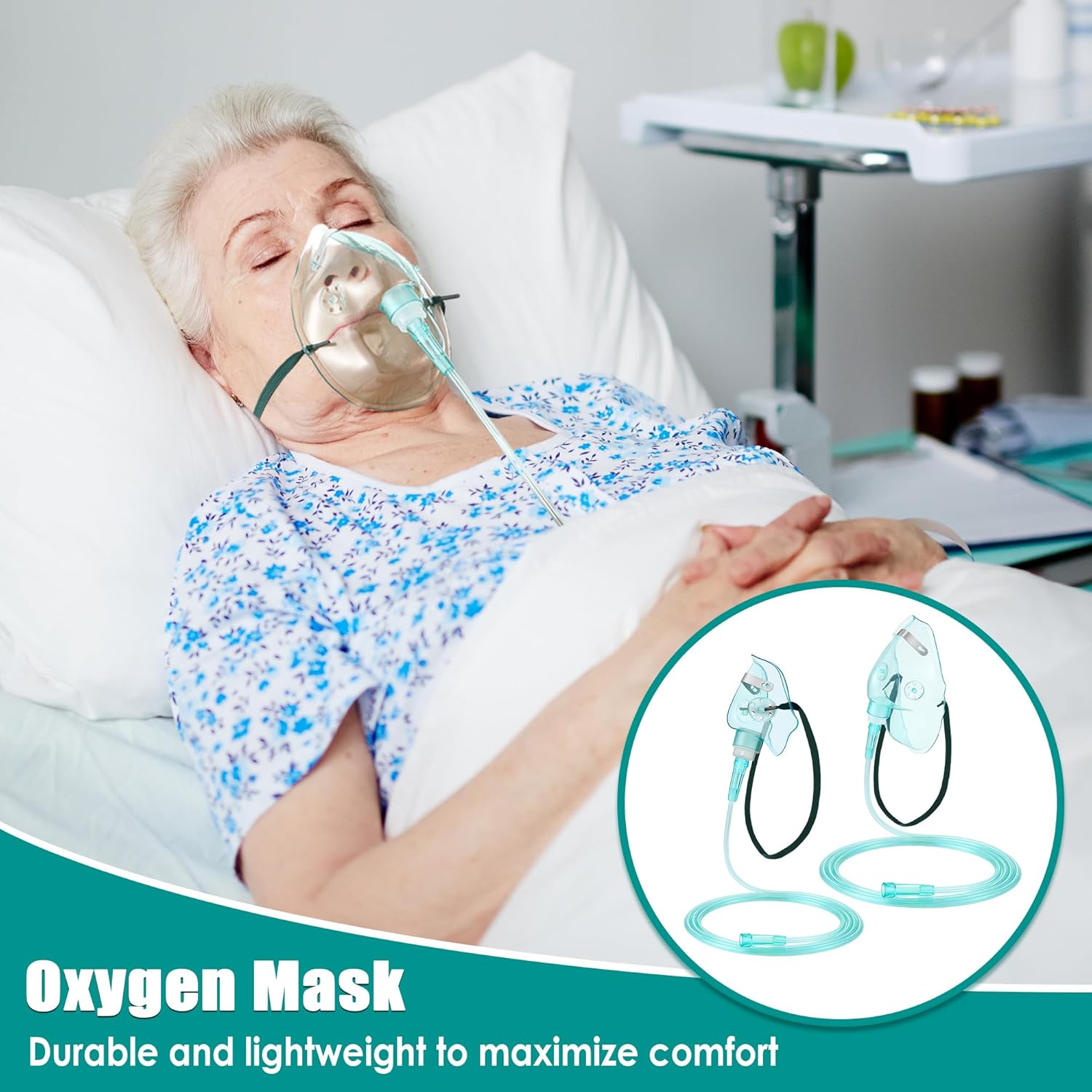 • Thoughtful Design: The oxygen mask for adult comes with an adjustable elastic headband that suits different head sizes, ensuring a safe, comfortable fit without slipping. It is further enhanced by a malleable nose clip that allows for precise adjustment of the nose profile, proper sealing to ensure optimal oxygen delivery, and a 7 foot anti kinking tube that allows for barrier free movement and consistent oxygen flow; This feature also helps prevent oxygen leaks, maximizing efficiency