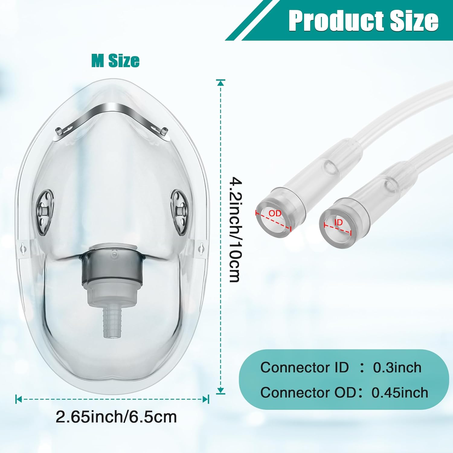 • Quality Material: Made from soft, medical grade PVC, the oxygen mask provides a gentle and comfortable fit that minimizes pressure points on the face, making it suitable for prolonged use without causing skin irritation. The oxygen mask without latex, ensuring the safety of users with latex allergies, while the transparent material allows caregivers to visually monitor the breathing and facial expressions