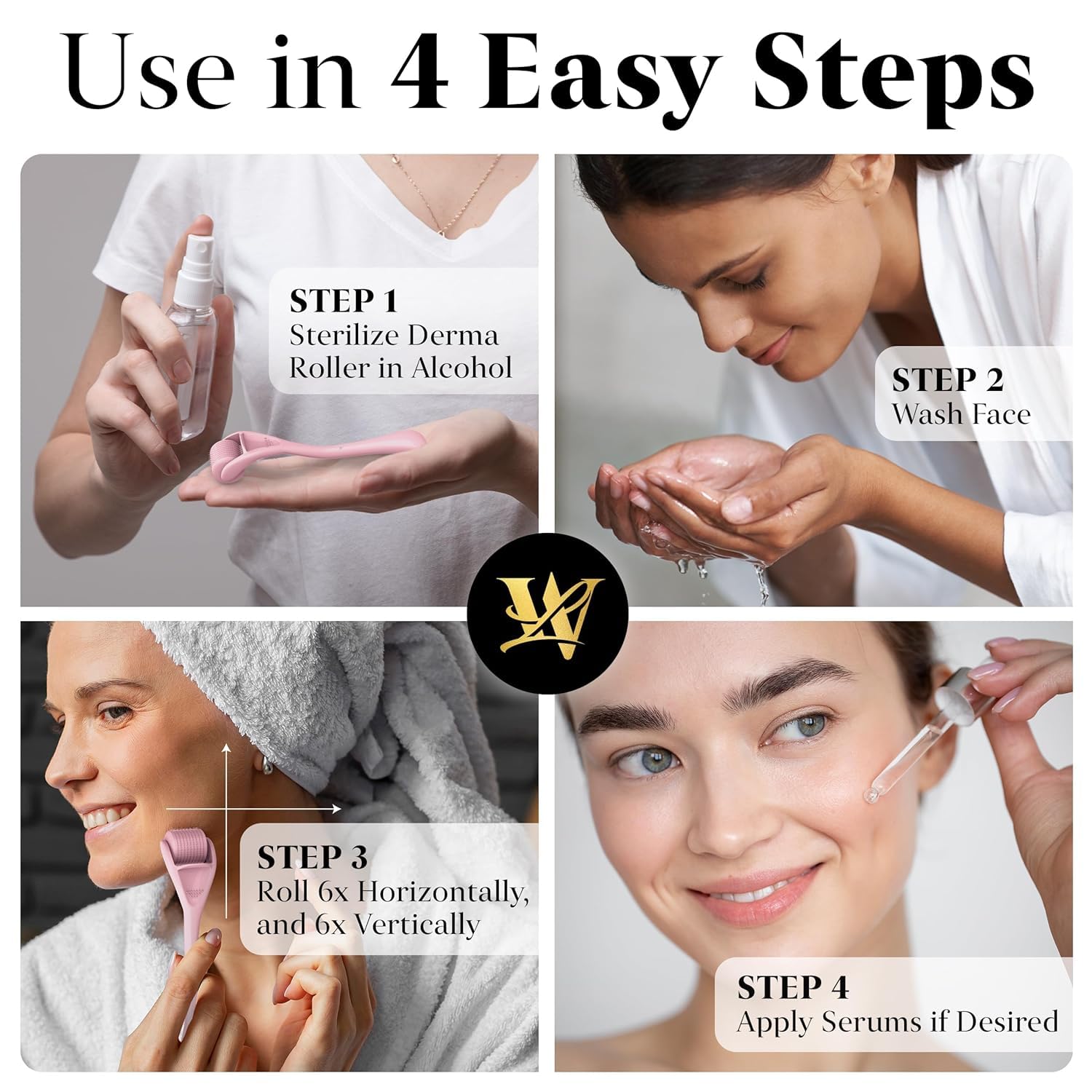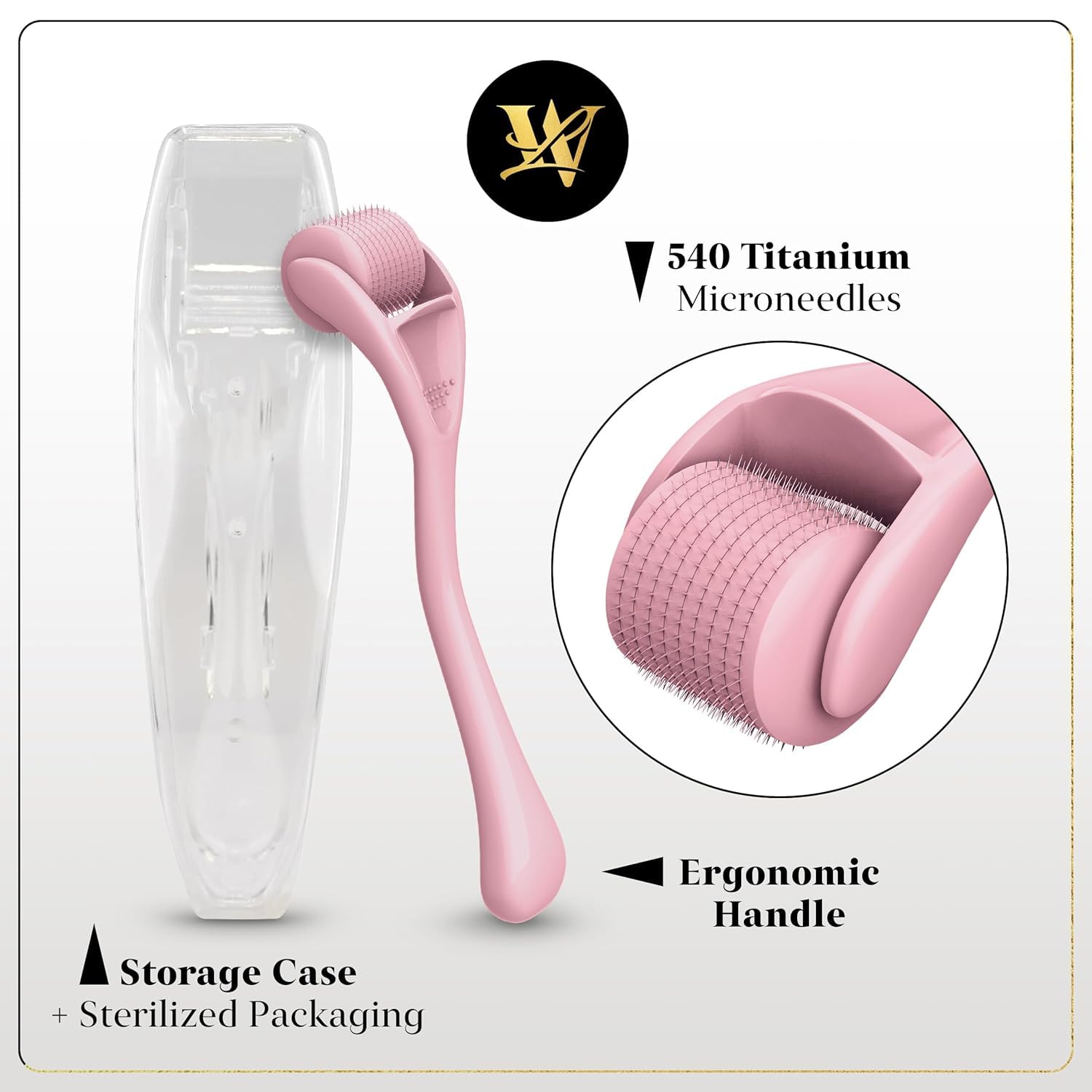 Derma Roller for Skin, Hair & Beard – Women and Men Titanium Microneedling Roller for Face & Scalp, Safe & Easy to Use - Pink