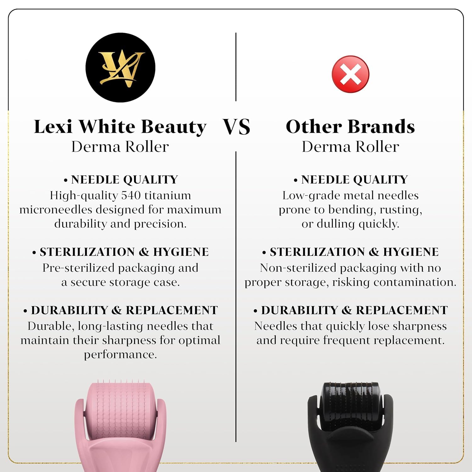 • Trusted Brand – Lexi White Beauty – As seen on top beauty platforms, Lexi White Beauty’s derma roller is designed for safe, consistent use. Protected by our 100% refund or replacement satisfaction guarantee.